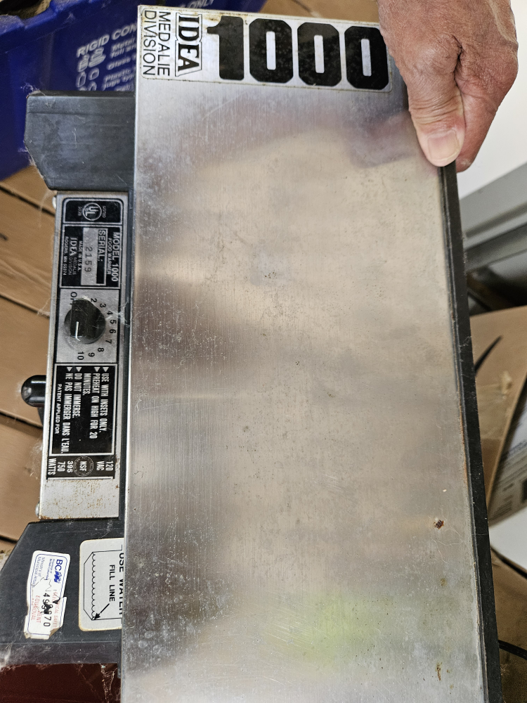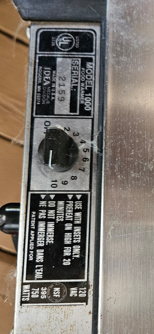 Selling a Medalie Division Idea 1000 food warmer. It appears to be in used condition and includes the main unit and two trays. Great for keeping food warm during gatherings or events!