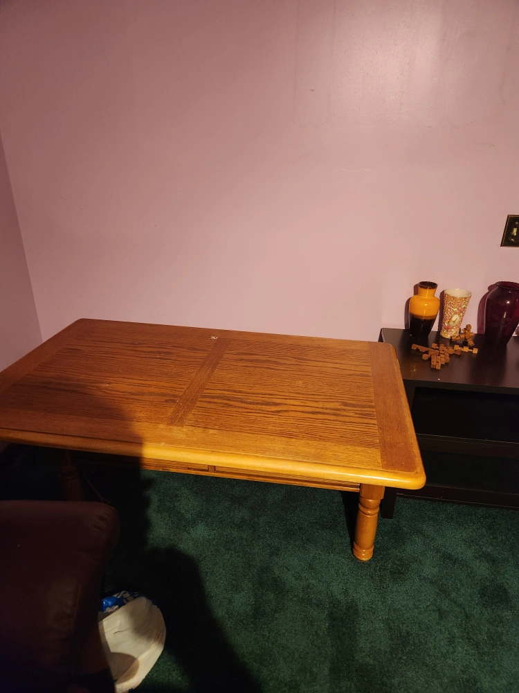 10A beautiful solid oak coffee table with two drawers for storage. The table features a simple, classic design.