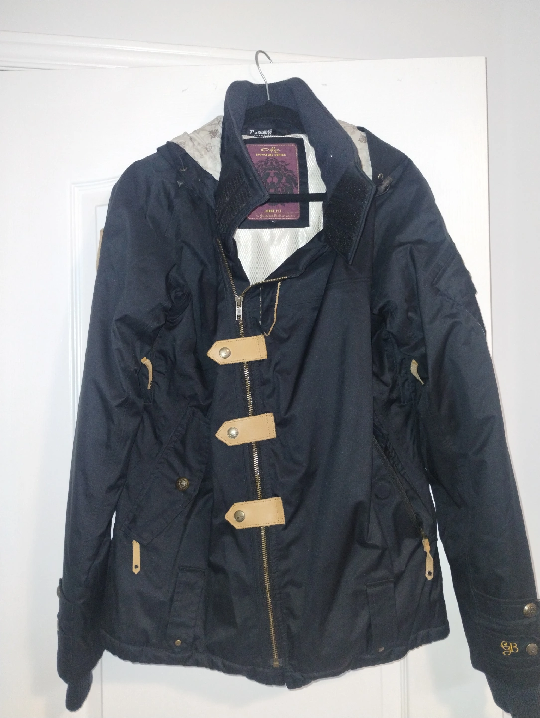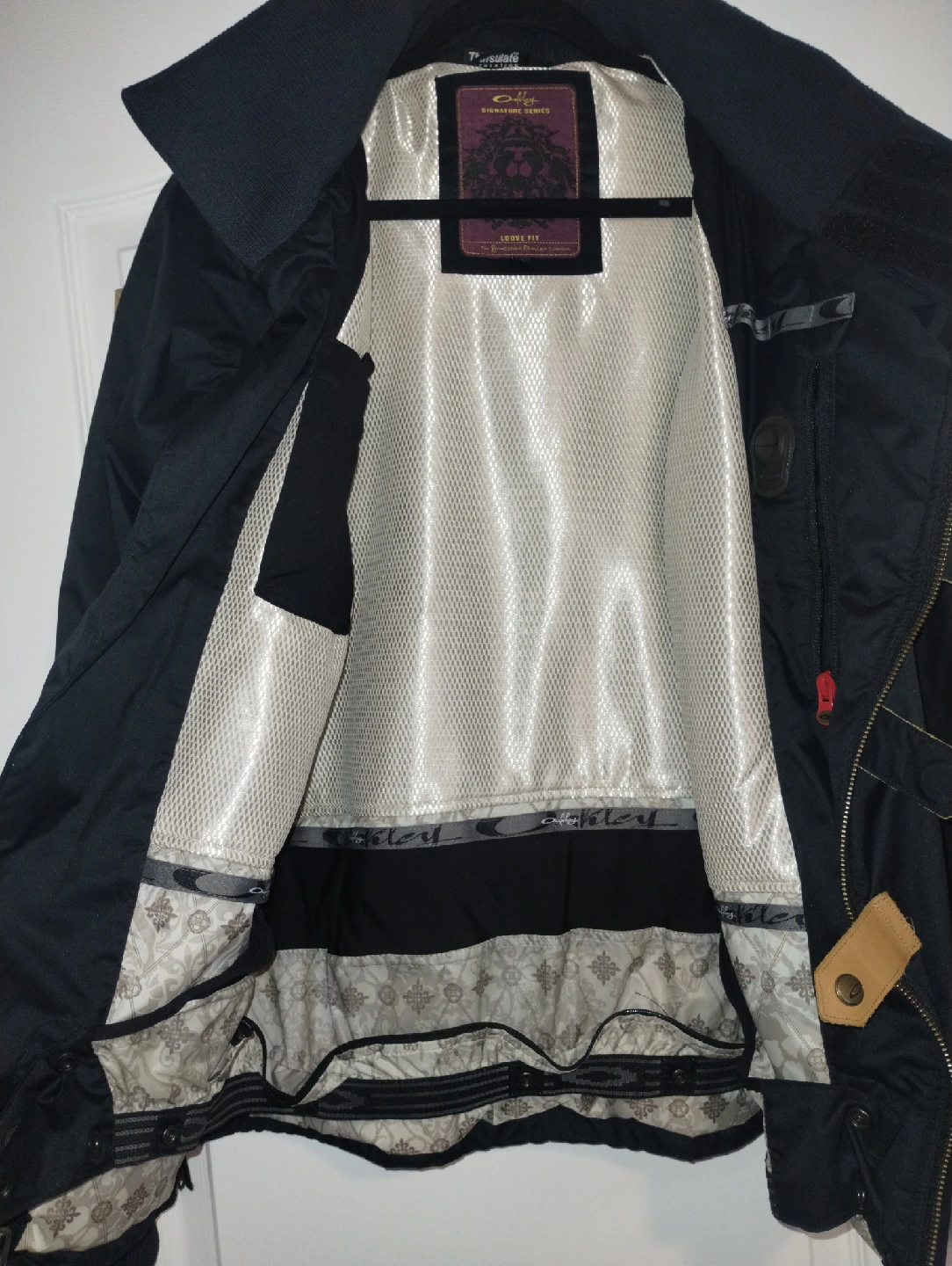 10Oakley womens Gretchen bleiler jacket size medium loose fit in navy brand new never worn. It has a unique design with toggle closures and a patterned lining in the hood. it's double lined