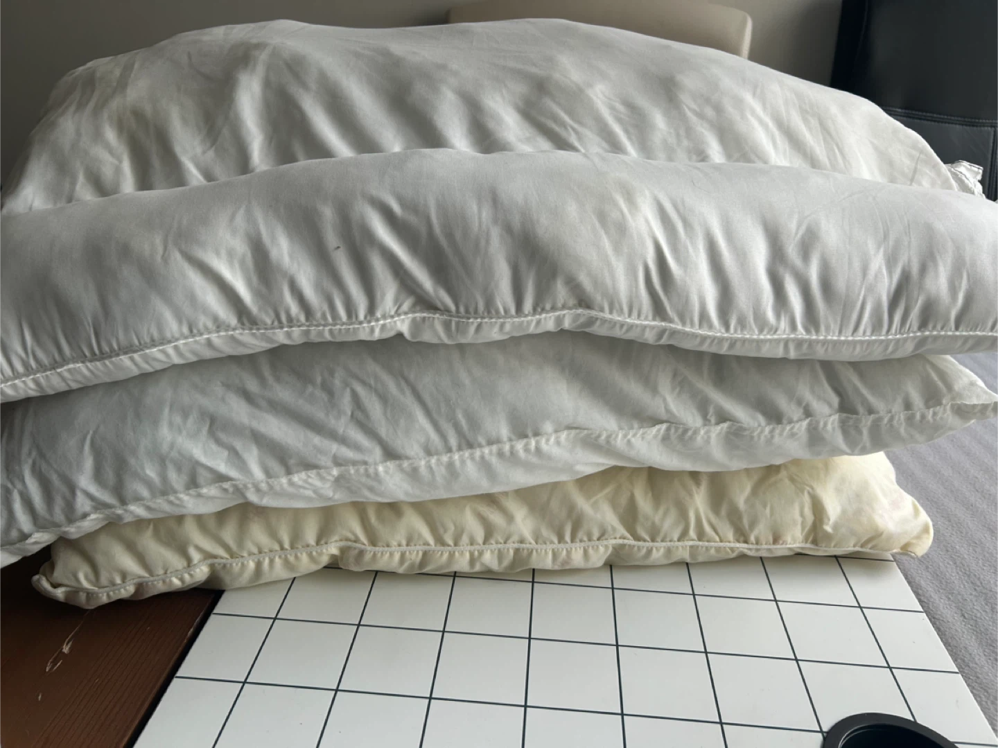 Four pillows are included in this set. Two are white, and two are a cream colour. They're soft and ready for use!