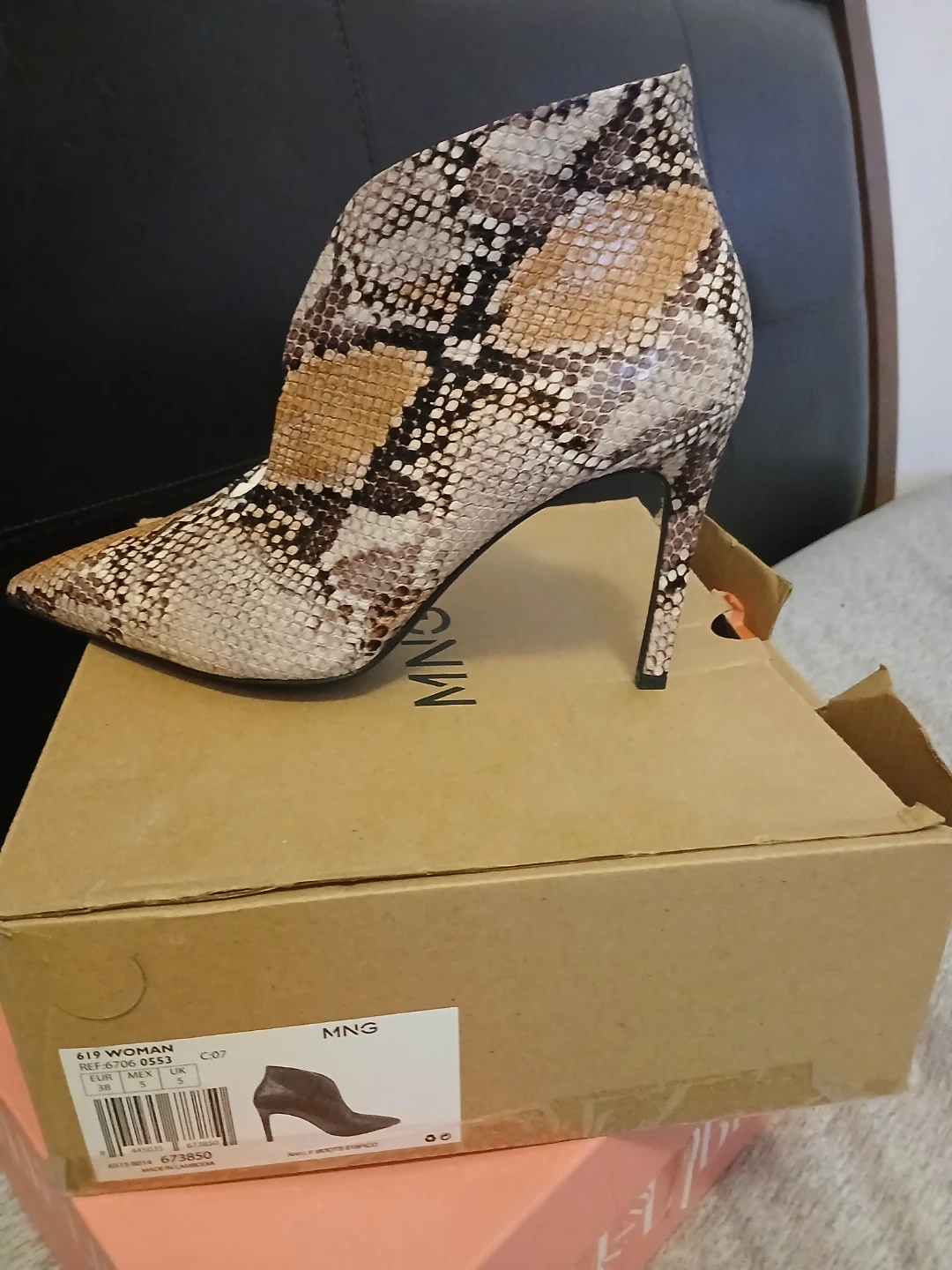 Selling a pair of MNG (Mango) women's heels in a stylish snake print! These are a size 7 (US). Comes with the original box