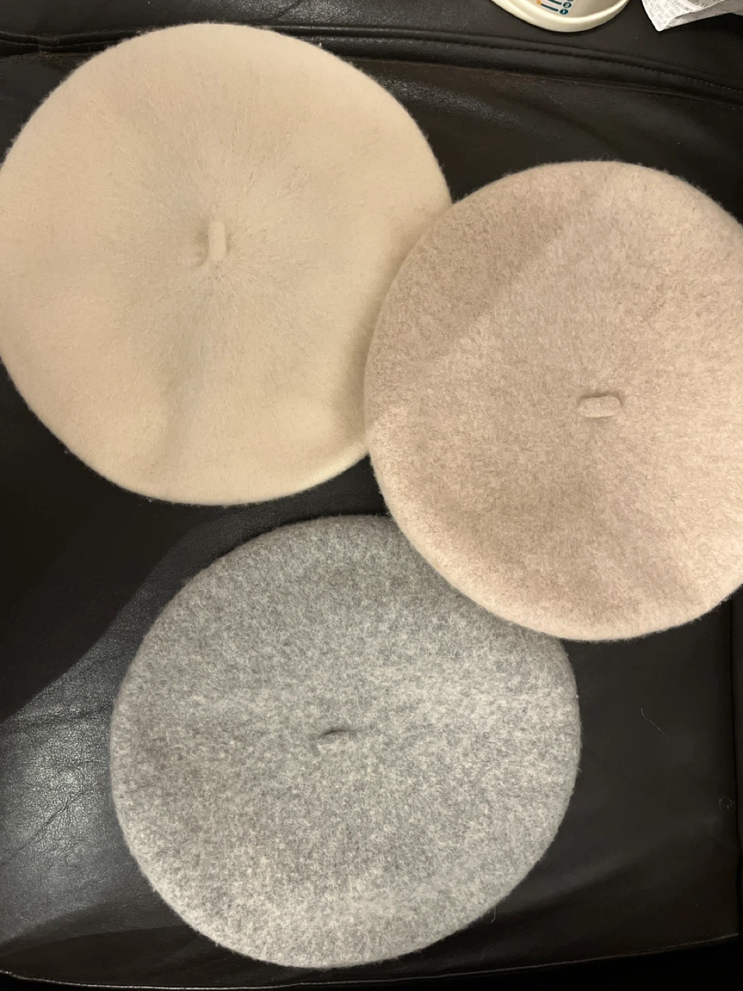 Selling three berets in neutral colours! There's one in beige, one in tan, and one in grey. They're in great condition and ready to add a touch of Parisian chic to your wardrobe