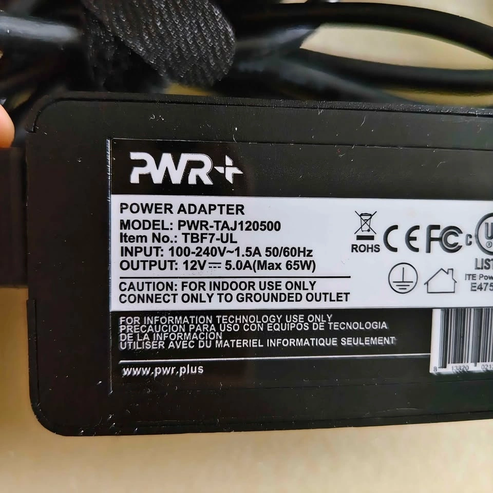 Reliable PWR+ laptop power adapter. Model PWR-TAJ120500, item TBF7-UL. Input is 100-240V~1.5A 50/60Hz. Output is 12V 5.0A (Max 65W). Pick up in Armdale Halifax.