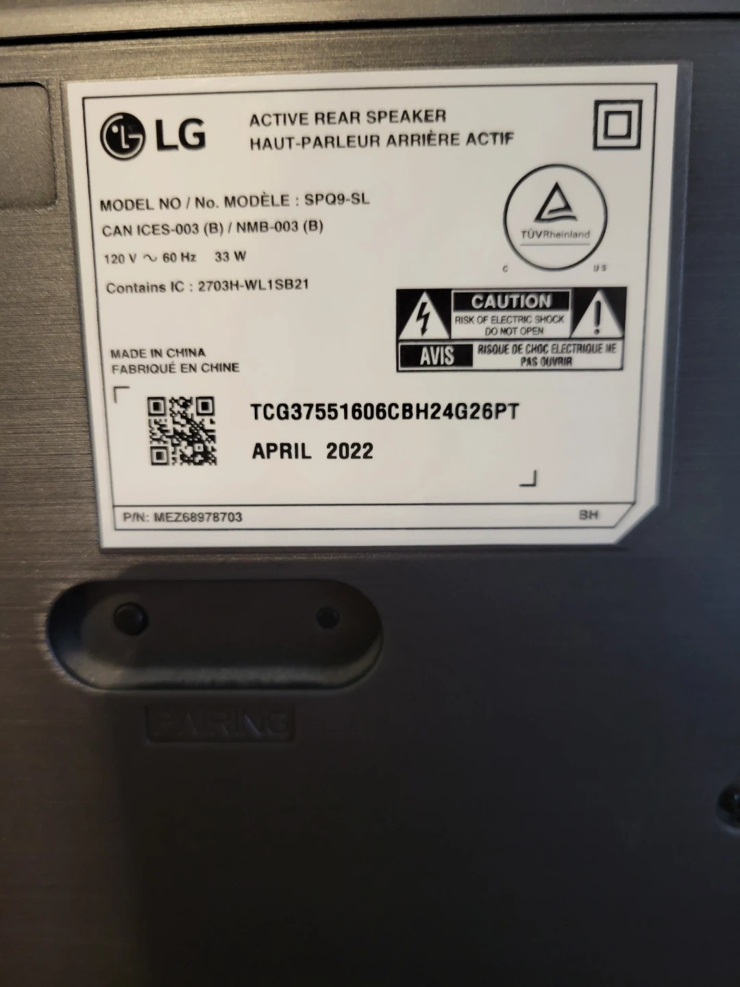 This is an LG SRQ95 with sound bar system with a wireless active subwoofer and two active rear speakers. Dolby Atmos with dynamic rich sound. 1 year old sounds amazing.