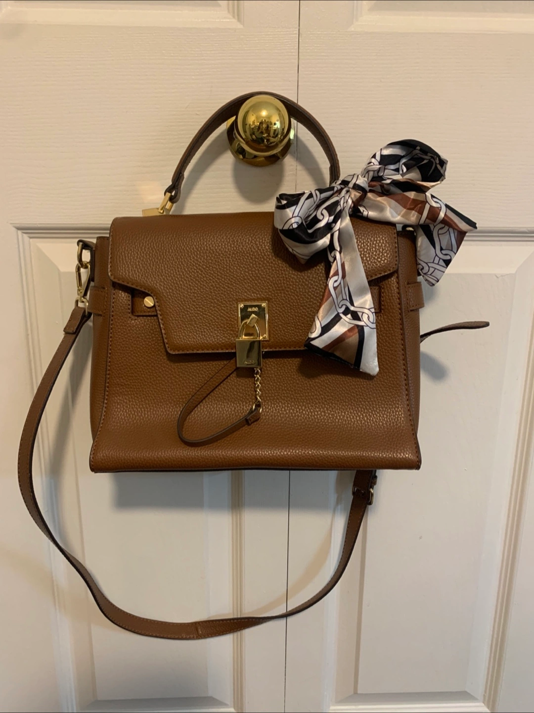Gorgeous Aldo satchel. Brown pebbled leather. Top handle and detachable shoulder strap. Gold-tone hardware. Interior zip pocket. Excellent condition.
