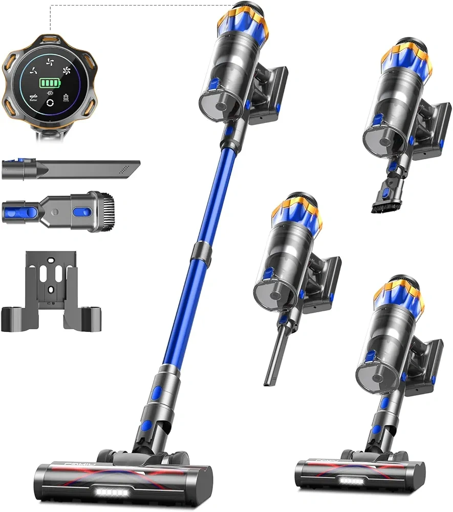 CAMIY Cordless Vacuum Cleaner, 600W 50KPA 65Mins Self-Standing Vacuum Cleaners with LED Display, Anti-Tangle, Rechargeable, Stick Vacuum Cordless for Pet Hair, Carpets, Hard Floors & Car