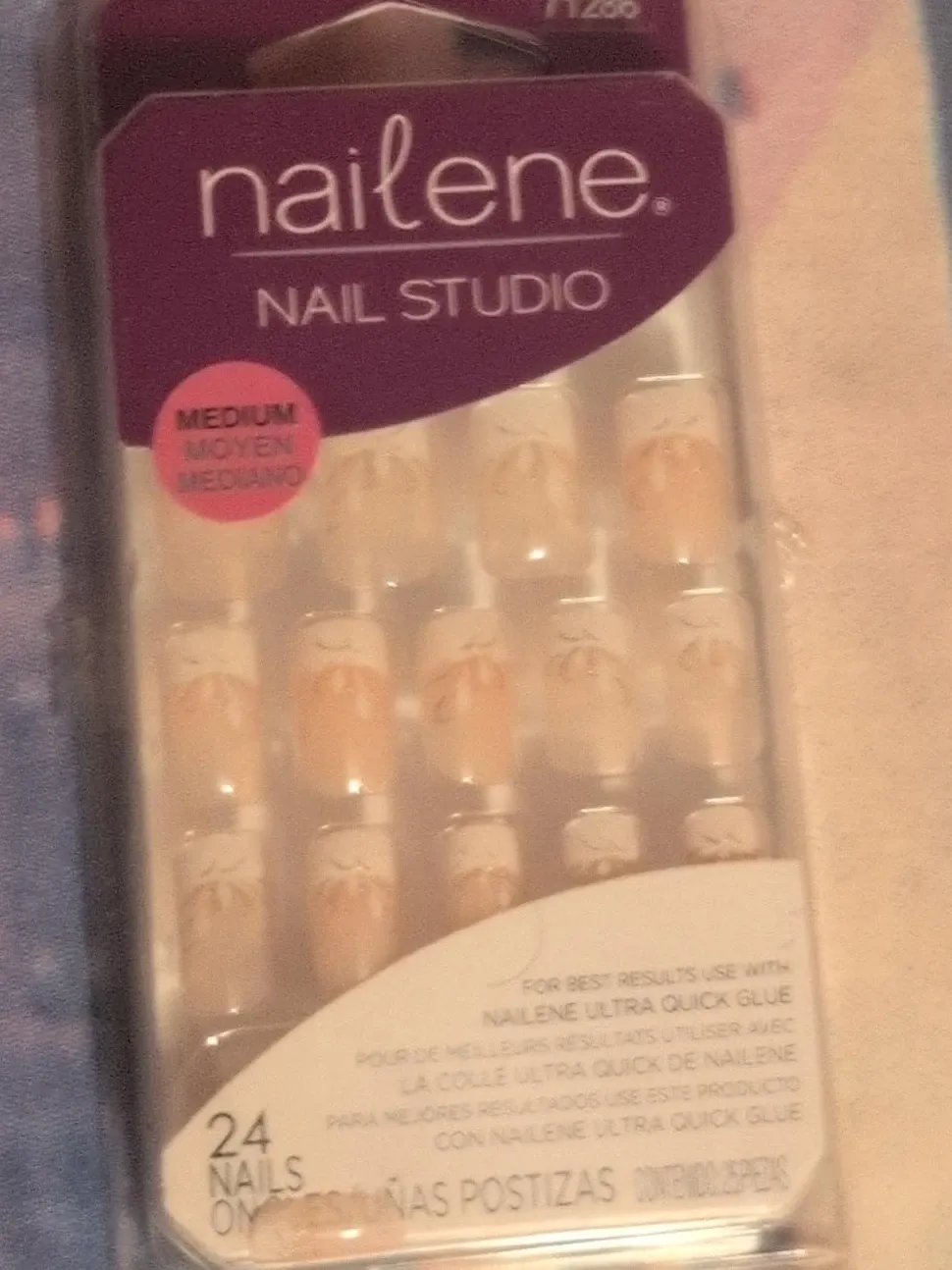 Nailene Nail Studio artificial nails in a medium size. Includes 24 nails. For best results, use with Nailene Ultra Quick Glue.