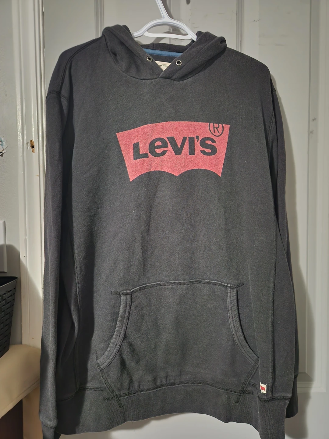 Selling a comfy Levi's hoodie in black! It has the classic Levi's logo on the front and a handy kangaroo pocket. Perfect for those cooler days or just lounging around