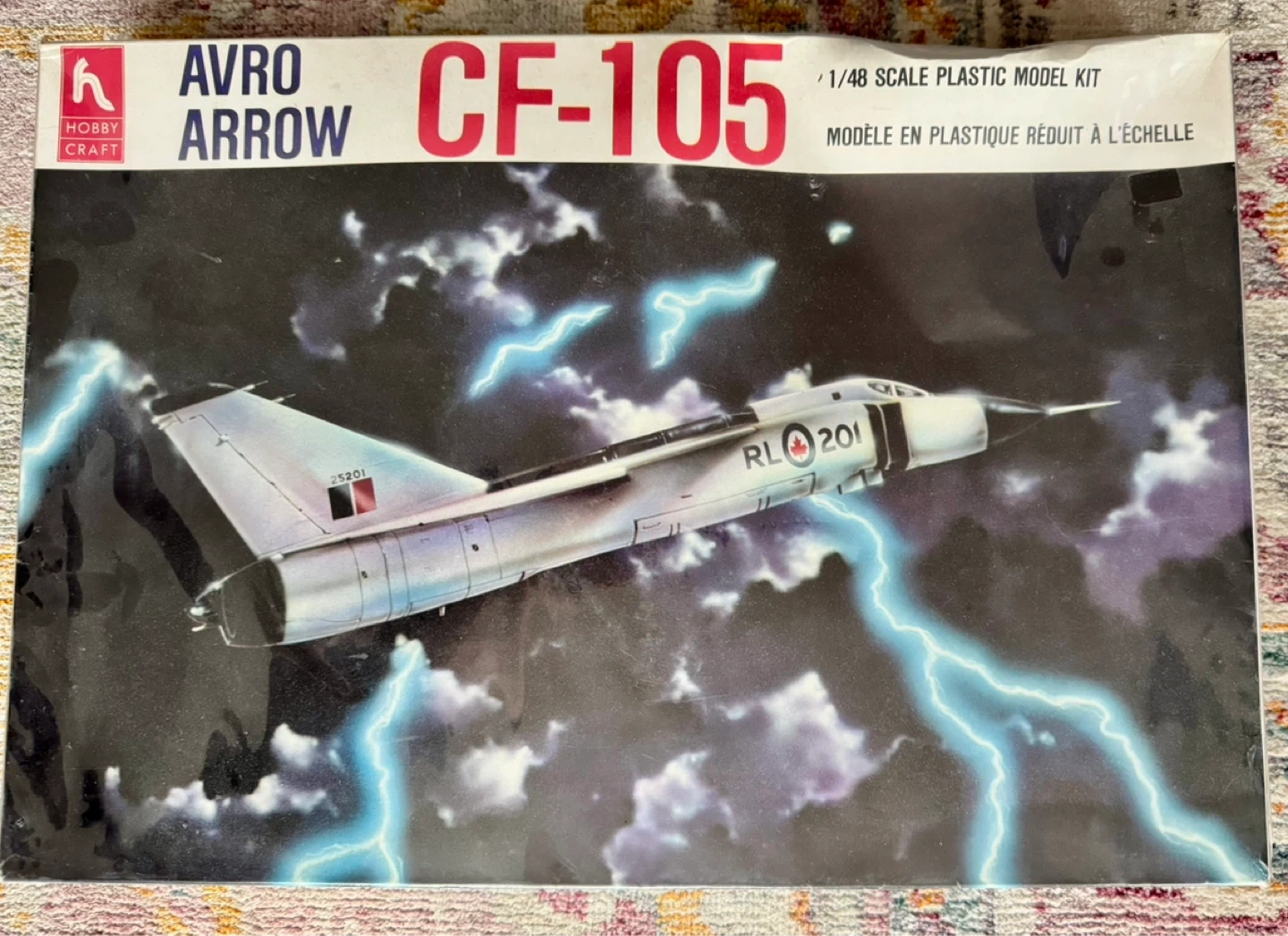 This is a 1/48 scale plastic model kit of the Avro Arrow CF-105 from the late 1980s. Made in Korea. Sealed in box however box does have some warping/damage.