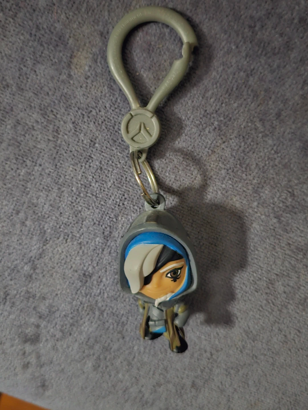This is an Ana keychain from Overwatch. It's a small collectible figure attached to a clip. Great for fans of the game!