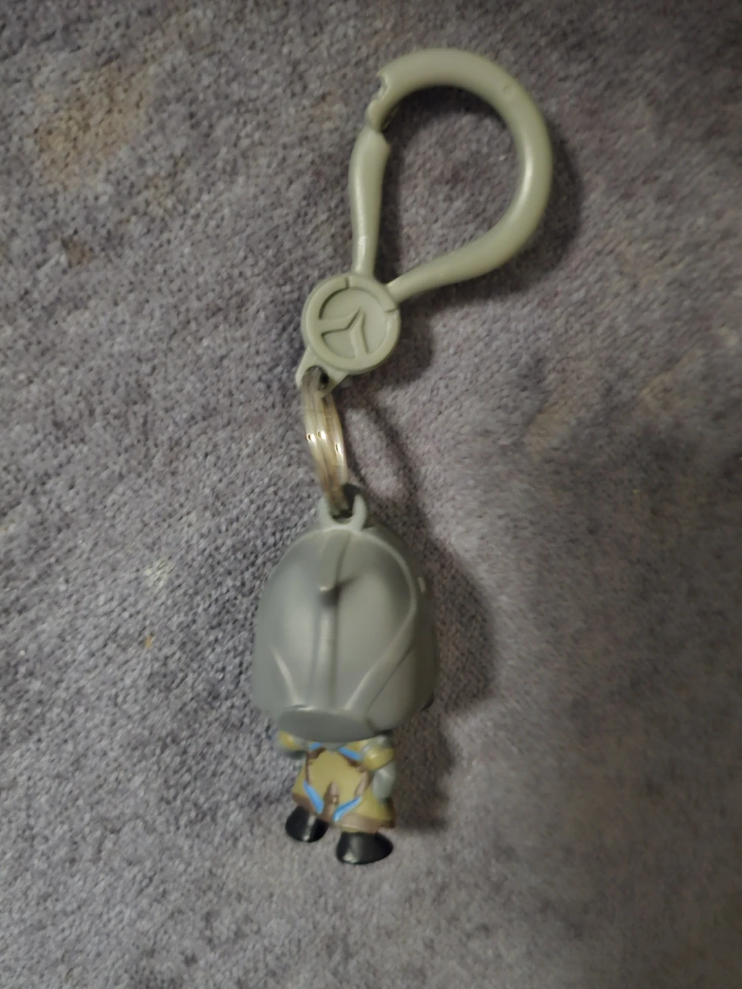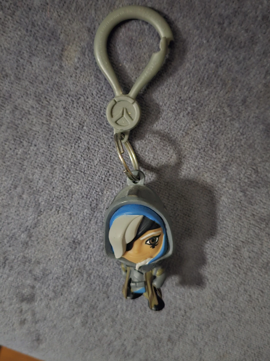 This is an Ana keychain from Overwatch. It's a small collectible figure attached to a clip. Great for fans of the game!