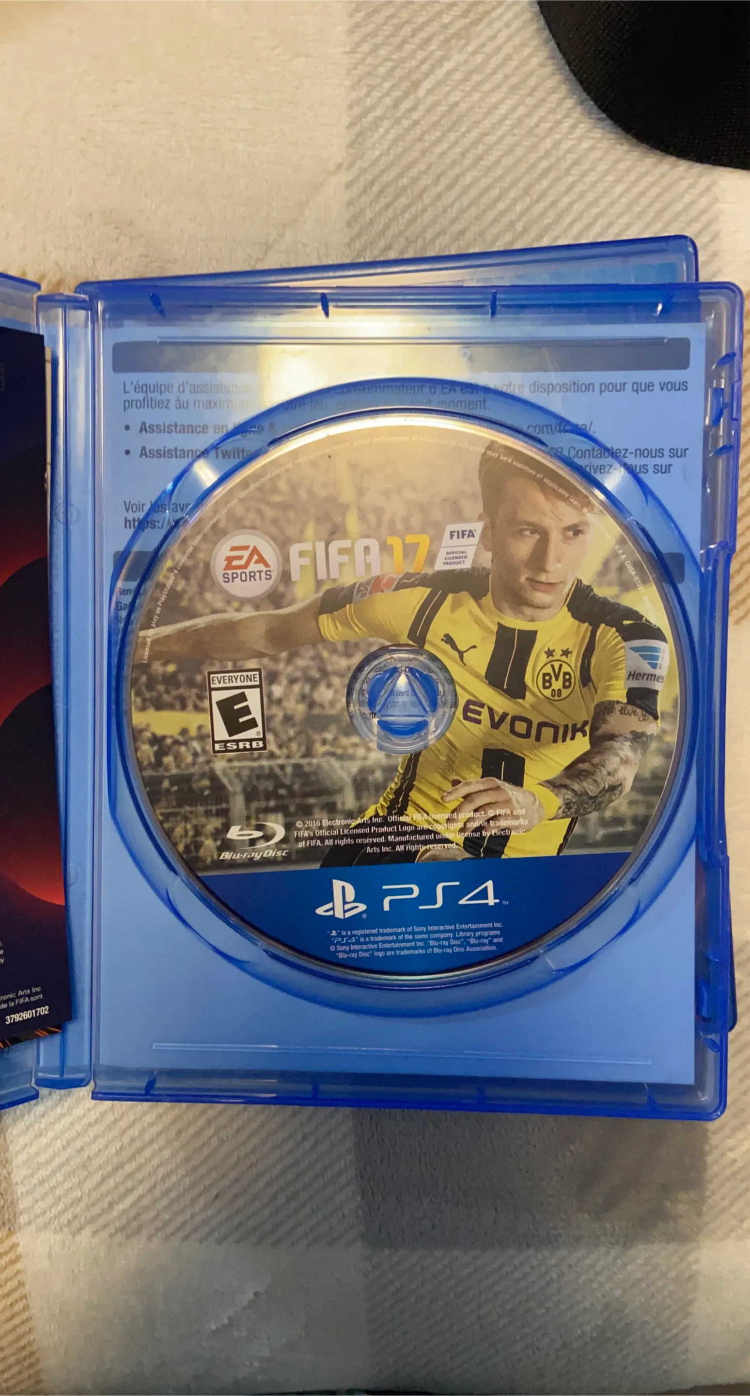 This is the FIFA 17 video game for PlayStation 4. It's the official licensed product from EA Sports. Rated E for Everyone by ESRB.