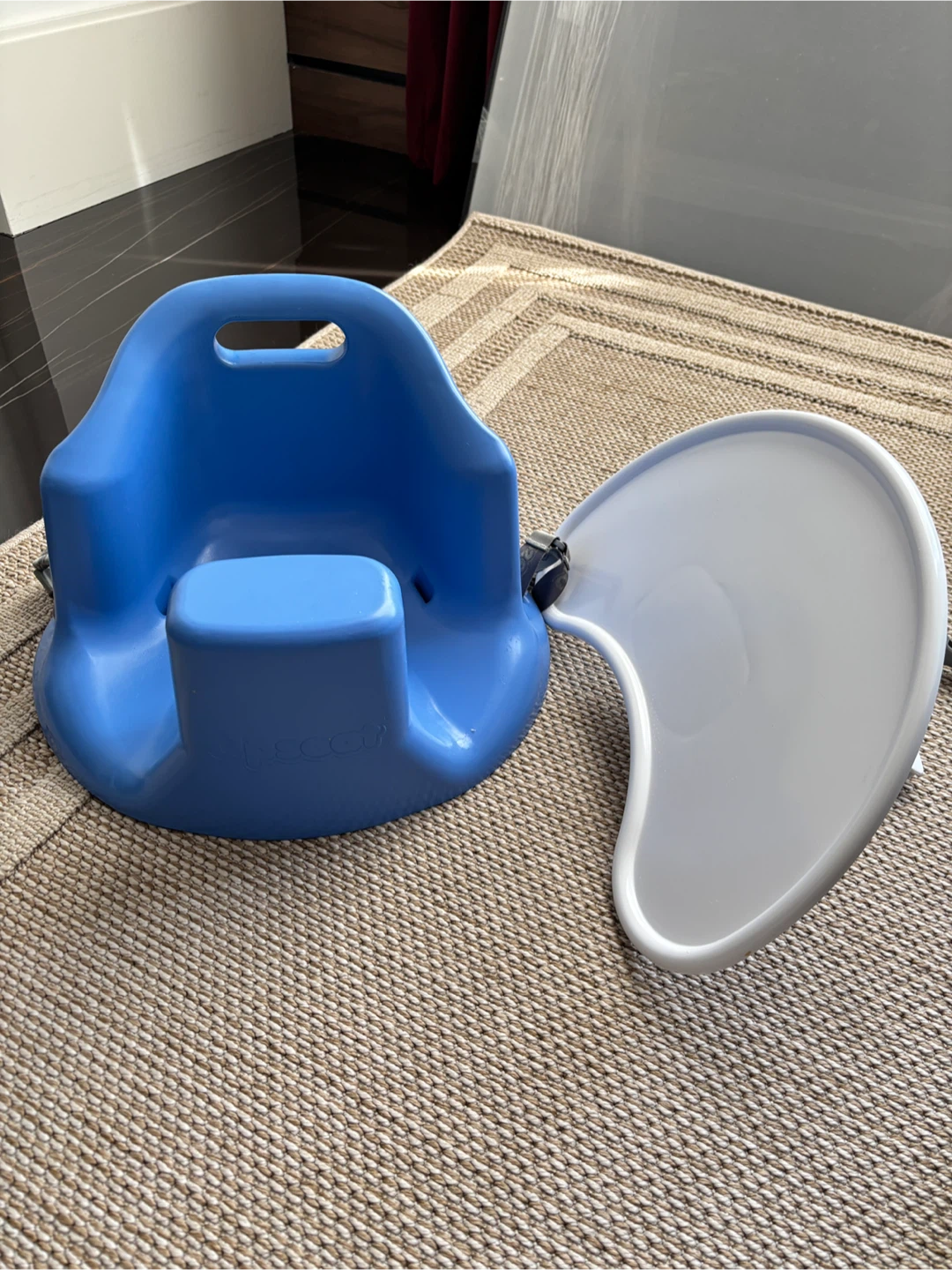 Selling a blue Upseat floor and booster seat! It's in great condition. It's perfect for helping your little one sit up and join in on family time. Super convenient to take with you when you dine out.