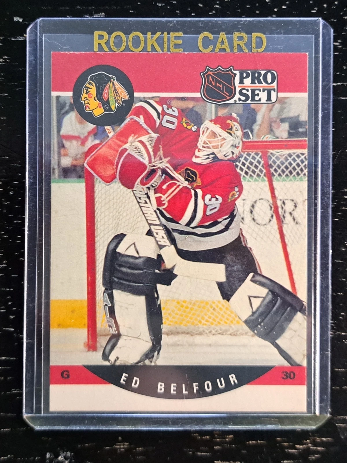 Original Upper Deck rookie cards for Jaromir Jagr (90-91), Pavel Bure (91-92), and Ed Belfour (90-91). All cards are standard size and in Near Mint or better condition. Card numbers are 54, 356, and 598. Features rookie cards from the 1990-91 and 1991-92 seasons. Players represented include Pavel Bure, Ed Belfour, and Jaromir Jagr. Teams include Pittsburgh Penguins, Vancouver Canucks, and Chicago Blackhawks.