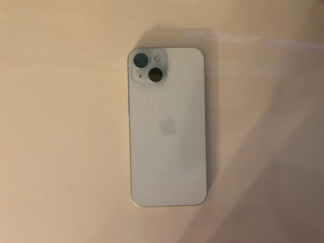 iPhone 15 blue 128gb. Comes with box & cases. No scratches or dents. Been in case + screen protector since purchase. Mint condition. Battery health at 89%.