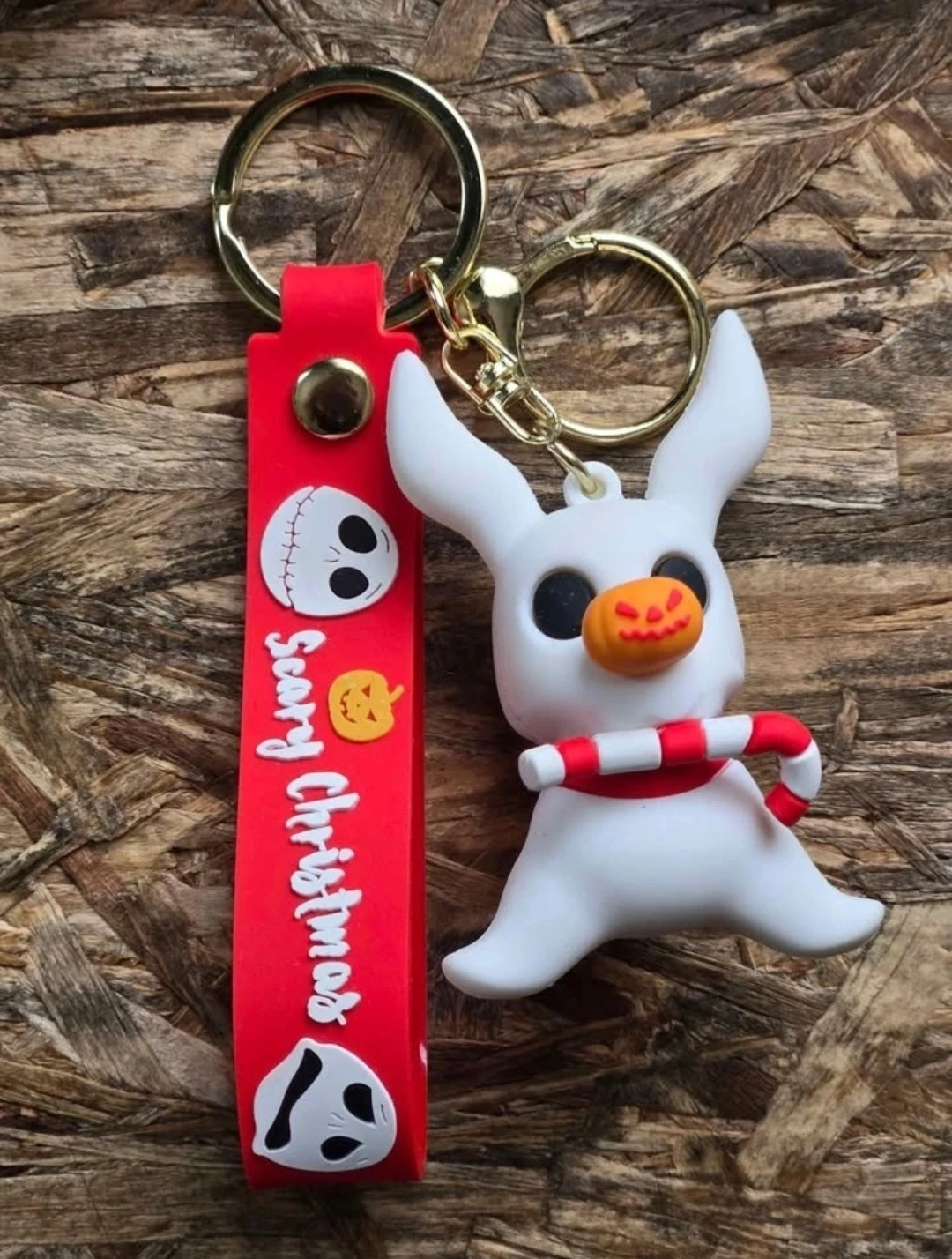 The strap says "Scary Christmas" with Jack's face details. Great for fans of the movie!