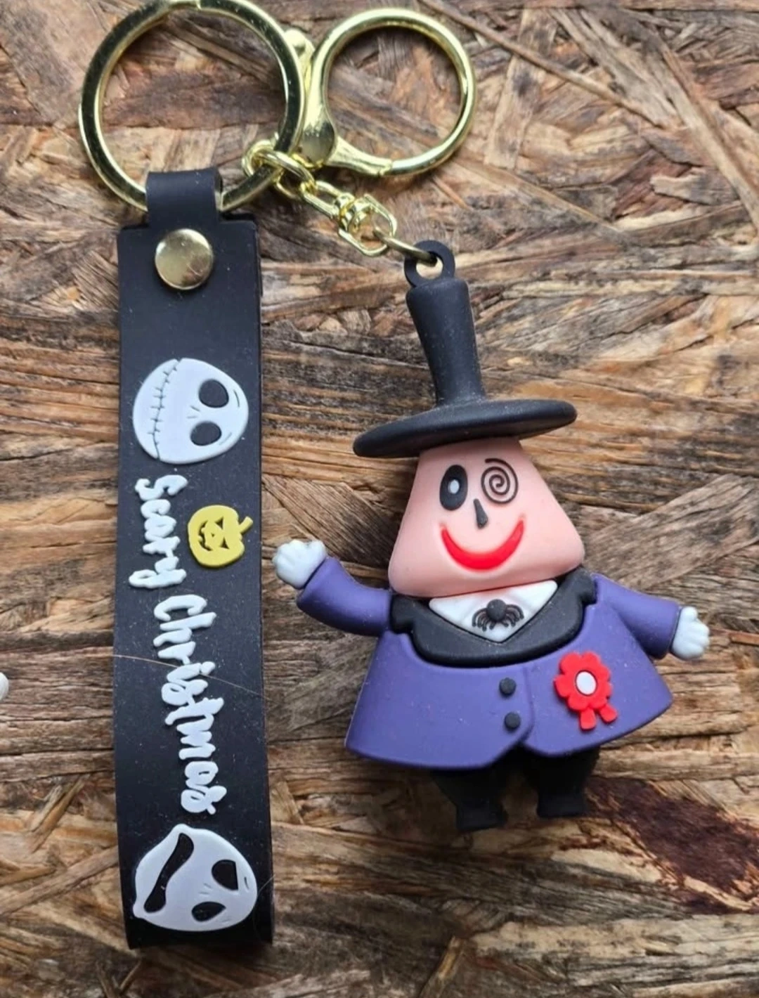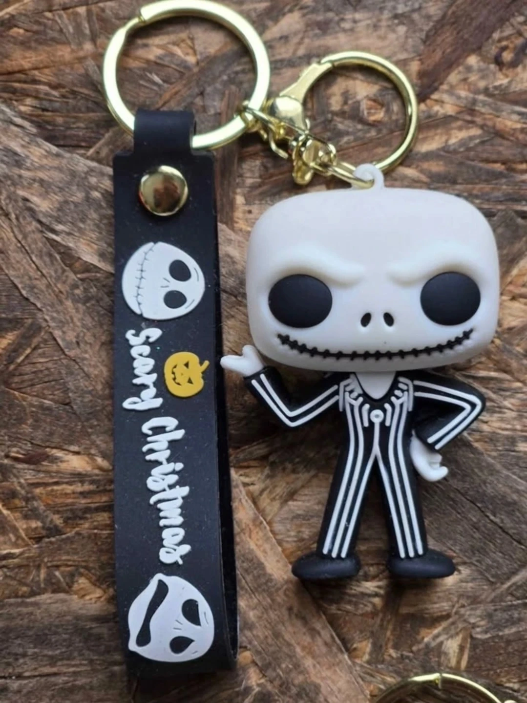 The strap says "Scary Christmas" with Jack's face details. Great for fans of the movie!