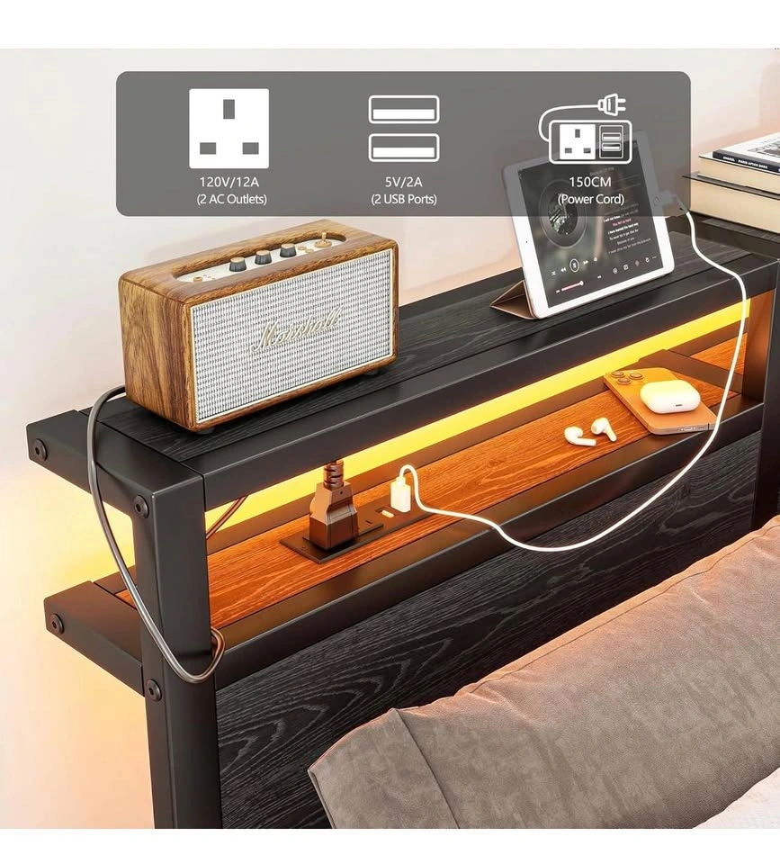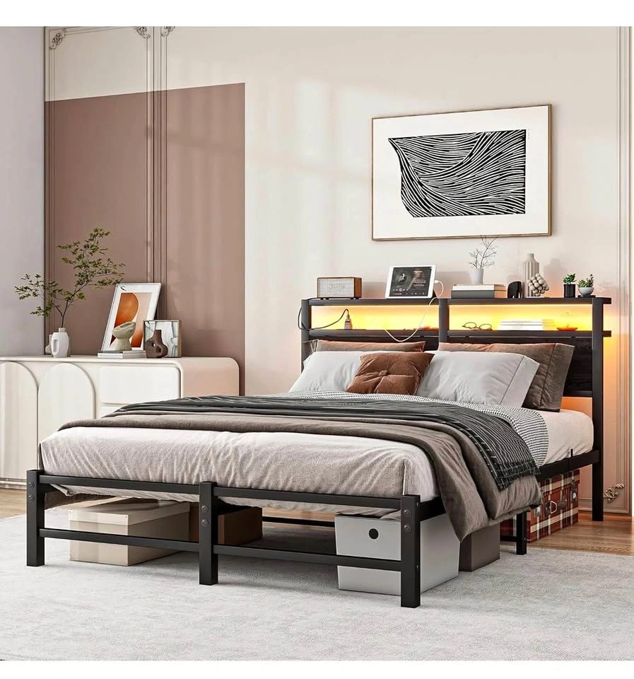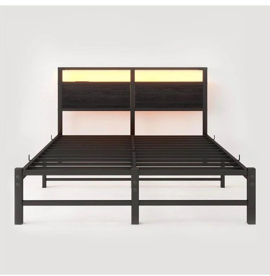 Queen Bed Frame w/ LED Headboard & Charging Ports