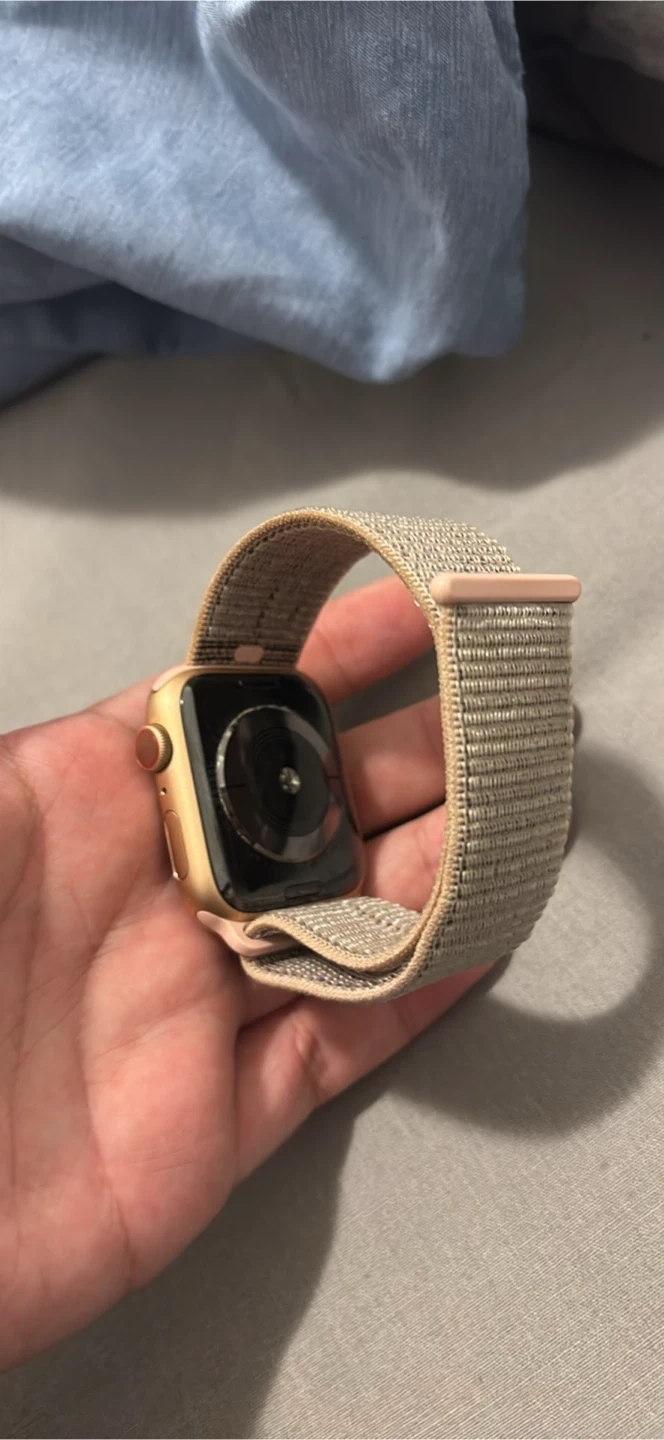 Buy & SellApple Watch Series 4 Gold Aluminum CaseApple Watch Series 4 Gold Aluminum Case$65Apple Watch Series 4 in gold aluminum. It's a smartwatch with a woven band. Comes with charging cable.ConditionGoodBrandAppleWHERE TO MEETCheck LocationView MapSELLERLoganCachet50 reviews2 chats·1 favorites·24 viewsSEND CHAT TO SELLERHi Logan! I’m interested in your listing.Hi Logan! I’m interested in your listing.Get the Karrot app to chatSign In to chat