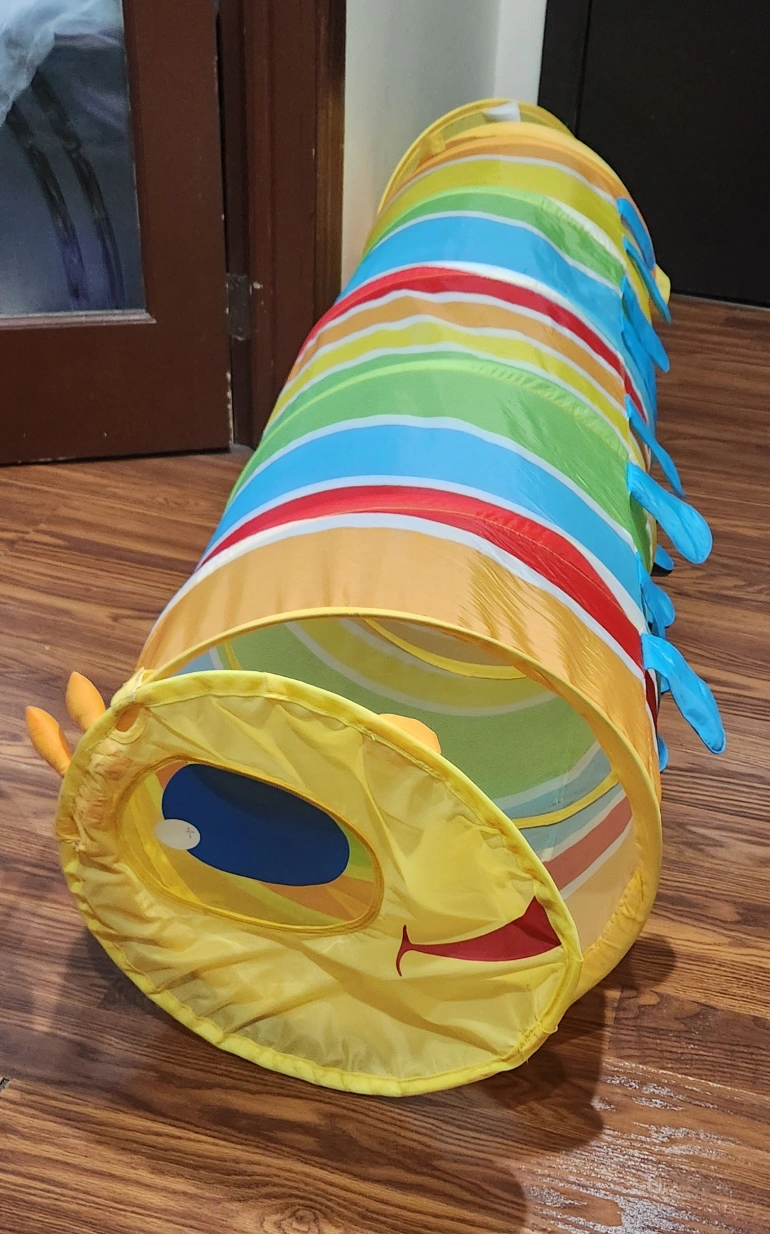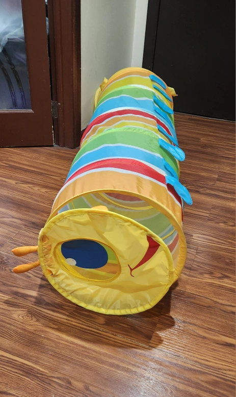 Colorful play tunnel, great for kids. Collapses for easy storage.