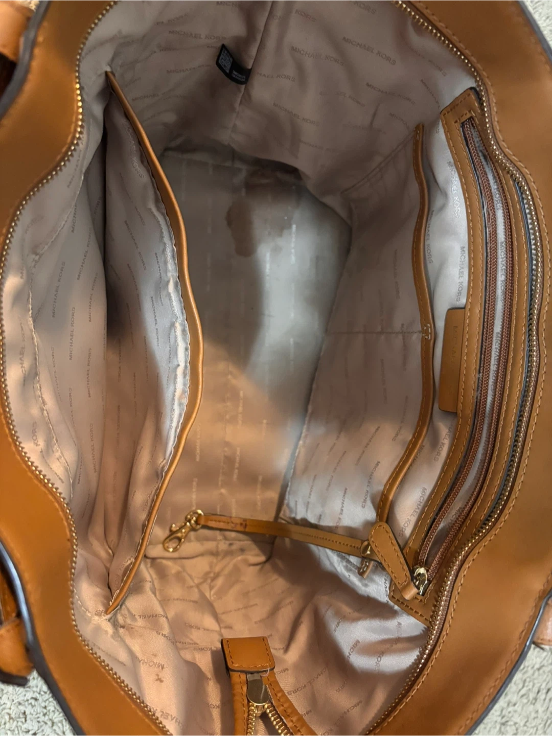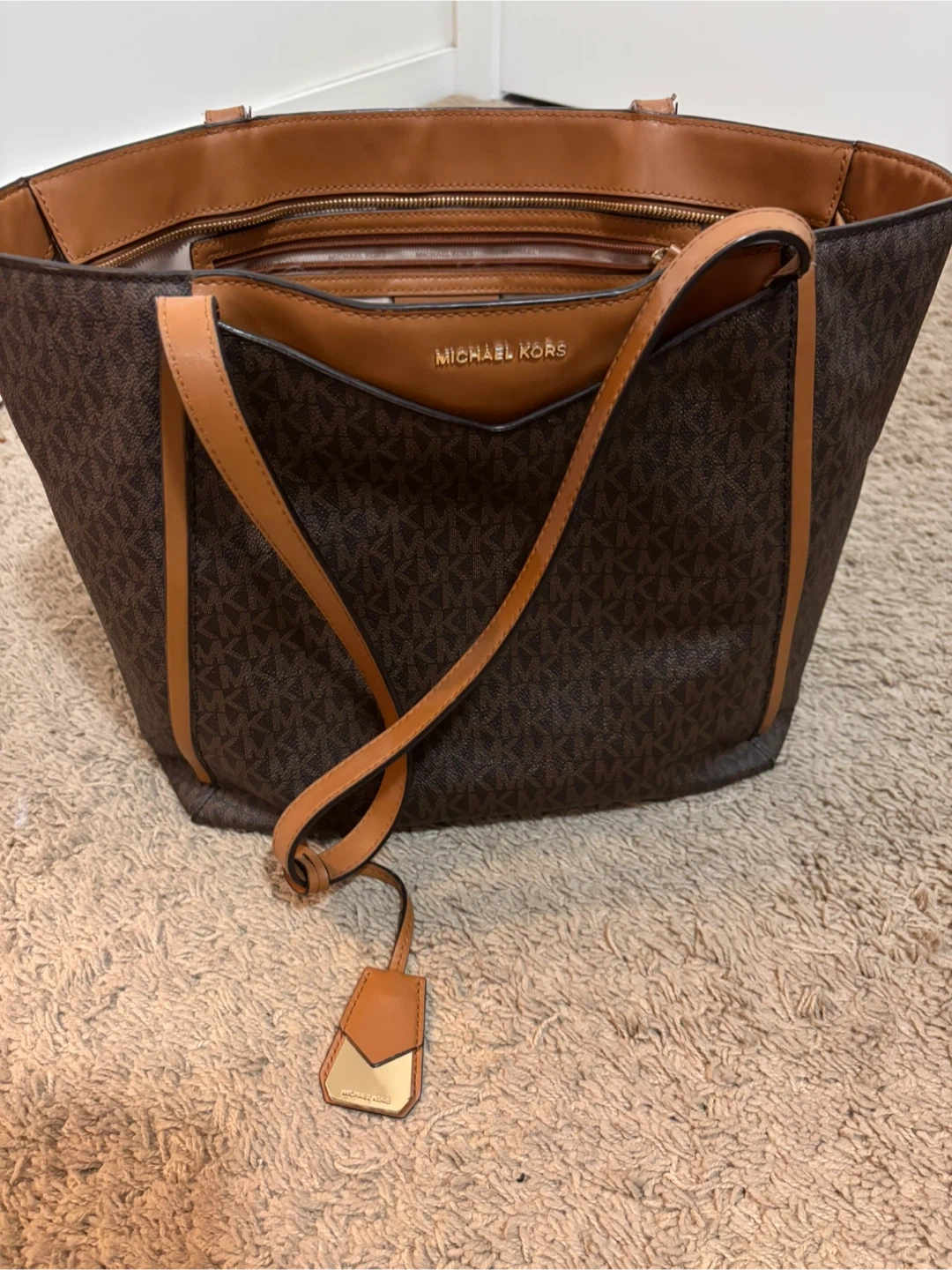 Selling a used Michael Kors tote bag in brown. Perfect for everyday use or travel