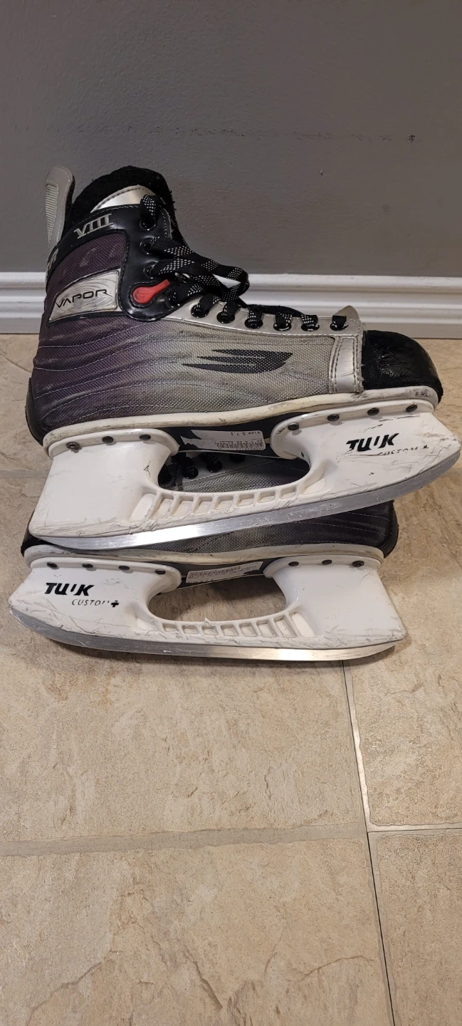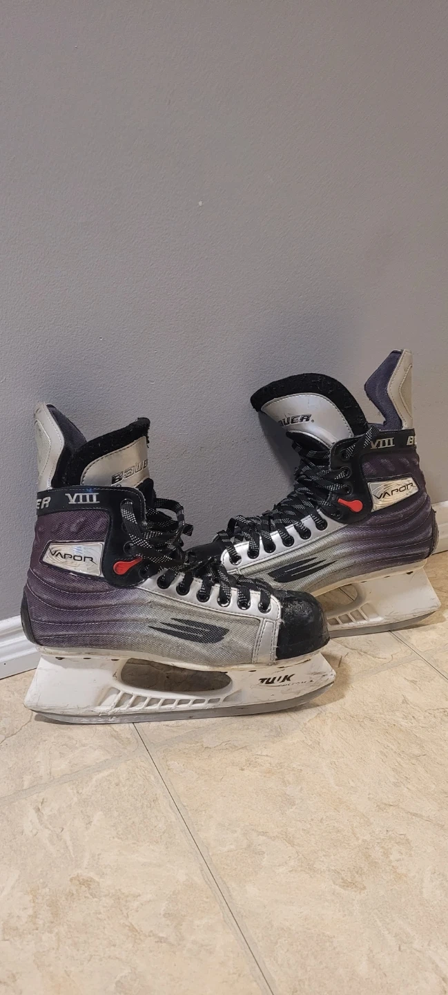 Bauer VAPOR VIII hockey skates. These are senior size skates. They have TUUK Custom+ blades. Skates are in used condition, new laces.