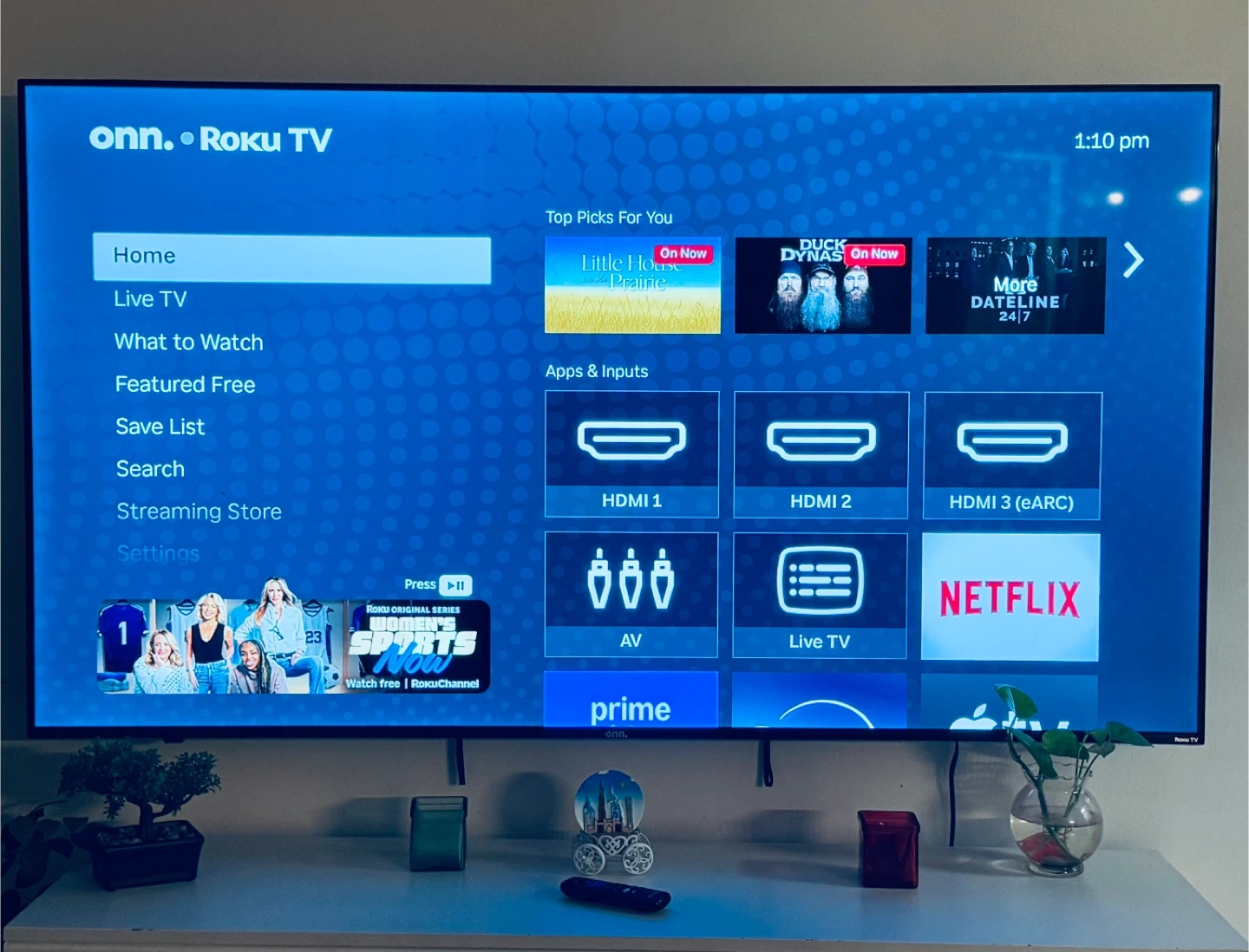 Selling an 70” onn. Roku TV. Great for streaming your favourite shows and movies with easy access to apps like Netflix, Prime Video, Disney+, and more. Enjoy a variety of free content on The Roku Channel too!
