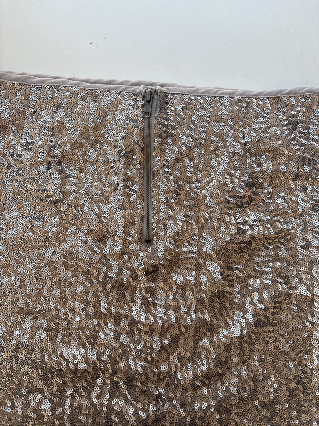 Sparkly mini skirt covered in sequins. It features a side zipper and a soft lining. Perfect for a night out!