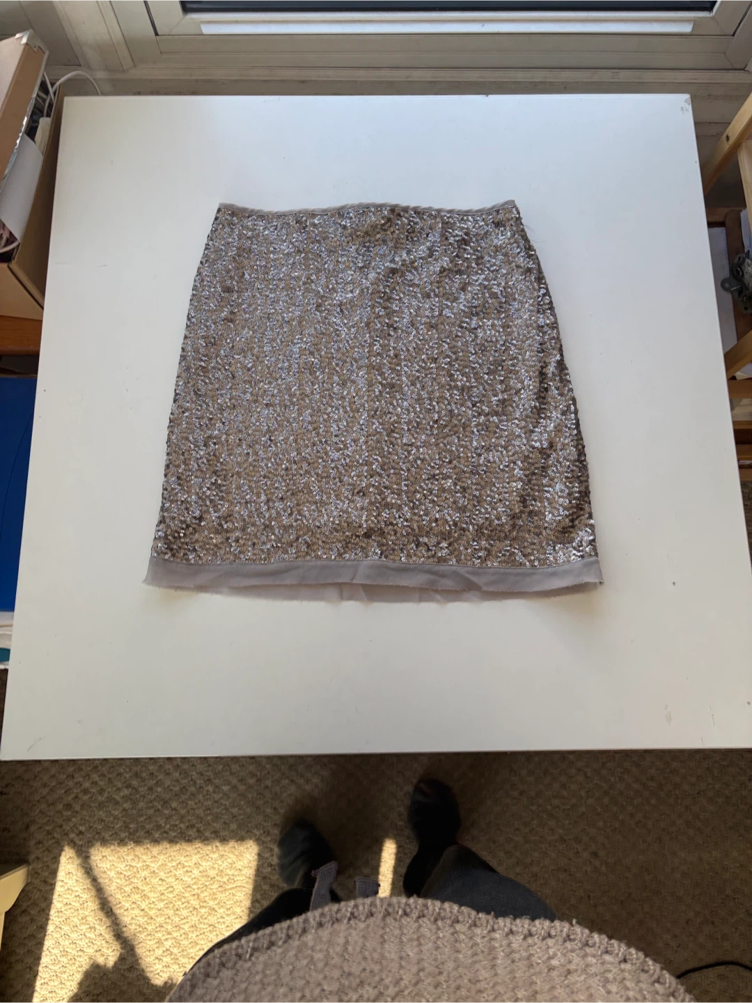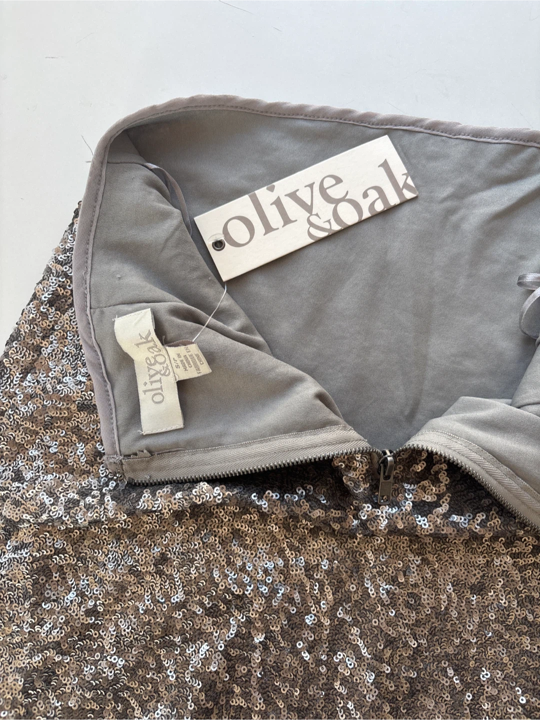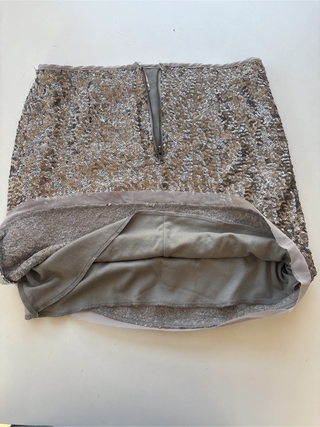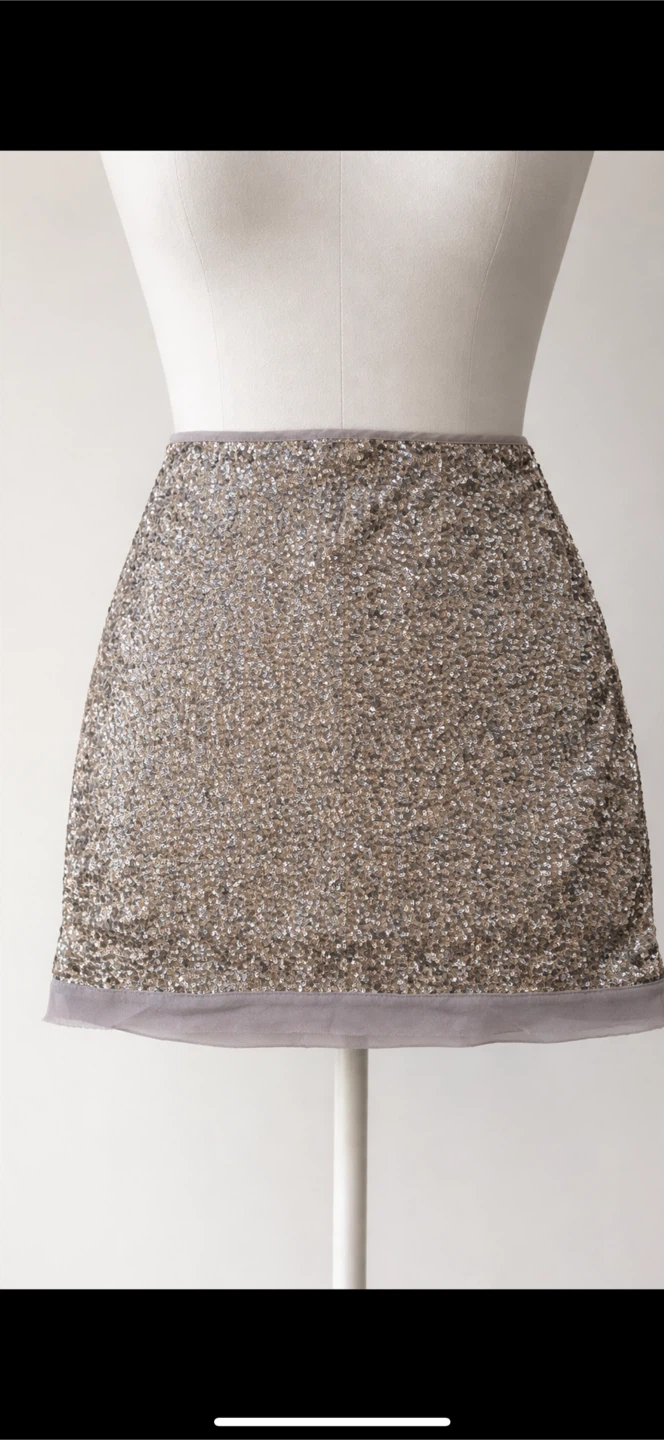 Sparkly mini skirt covered in sequins. It features a side zipper and a soft lining. Perfect for a night out!