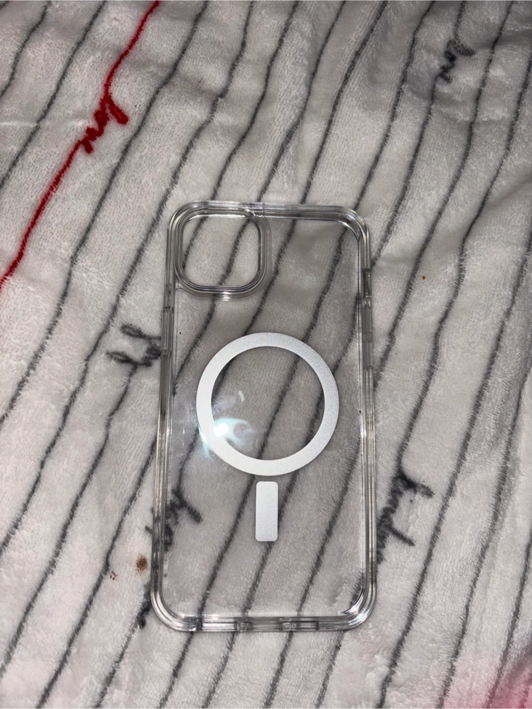 Selling a clear OtterBox Symmetry+ case for the iPhone 14 Plus! It features a sleek design and seamless interaction with MagSafe charging and accessories. The case is drop tested to 3X military standard and has built-in magnets to stay clear!