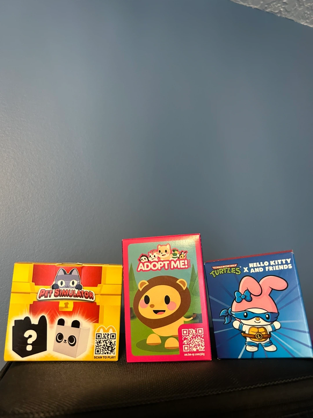 Three sealed McDonald's Happy Meal toys from popular games and franchises. Includes Pet Simulator, Adopt Me!