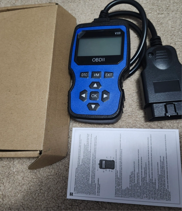 Selling a OBDII car diagnostic scanner code reader in blue. It comes with the box and instructions!