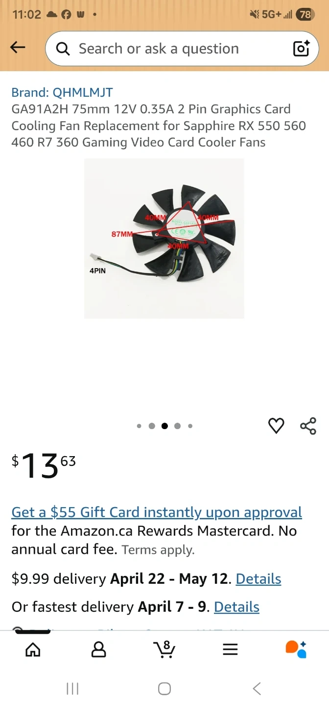 The replacement fan is $15 from Amazon.