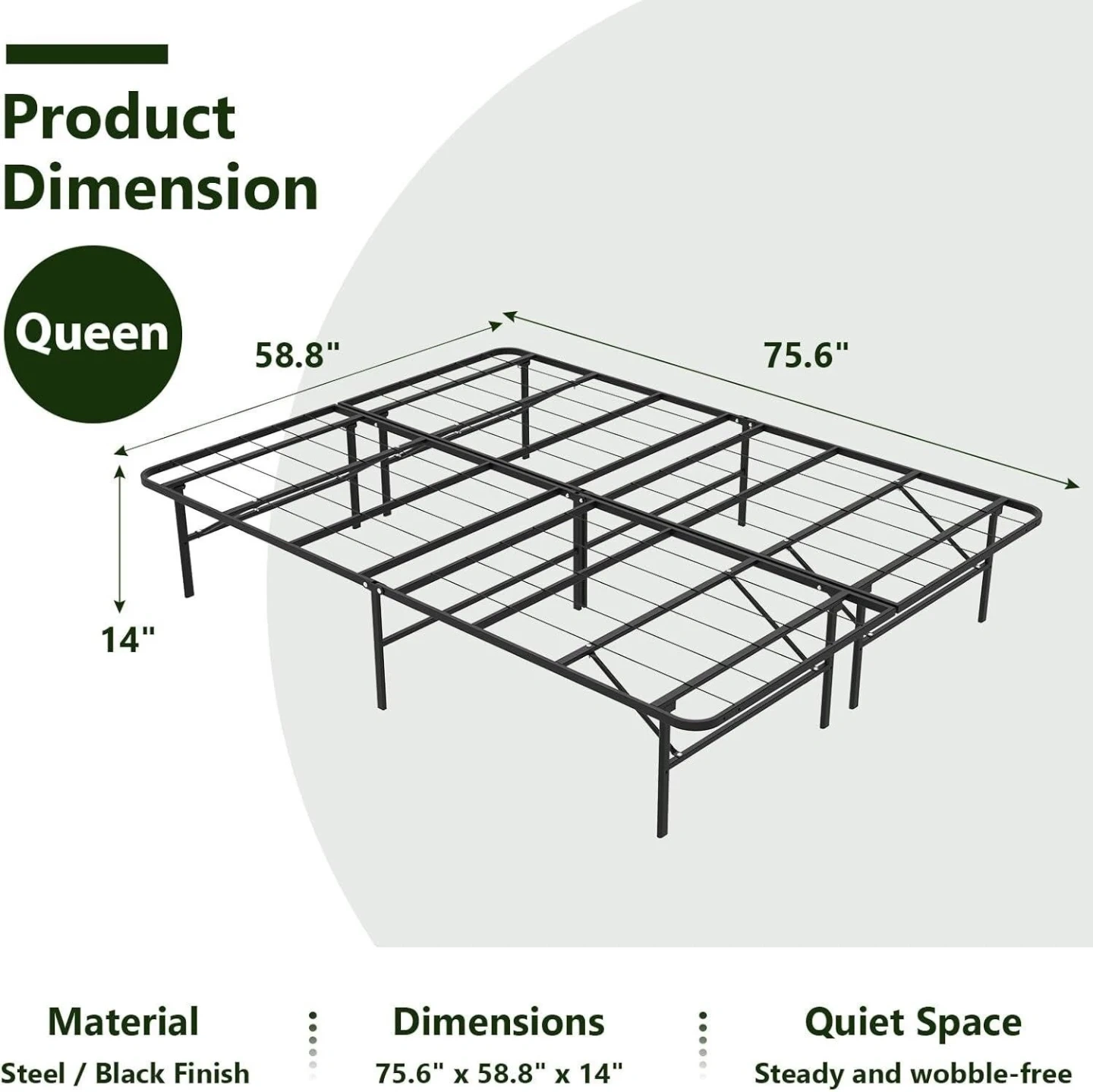 Upgrade your sleep space with this versatile and durable Queen Metal Platform Bed Frame. Designed for modern living, this 14-inch high frame offers ample under-bed storage and a rock-solid foundation for any mattress type—no box spring required.