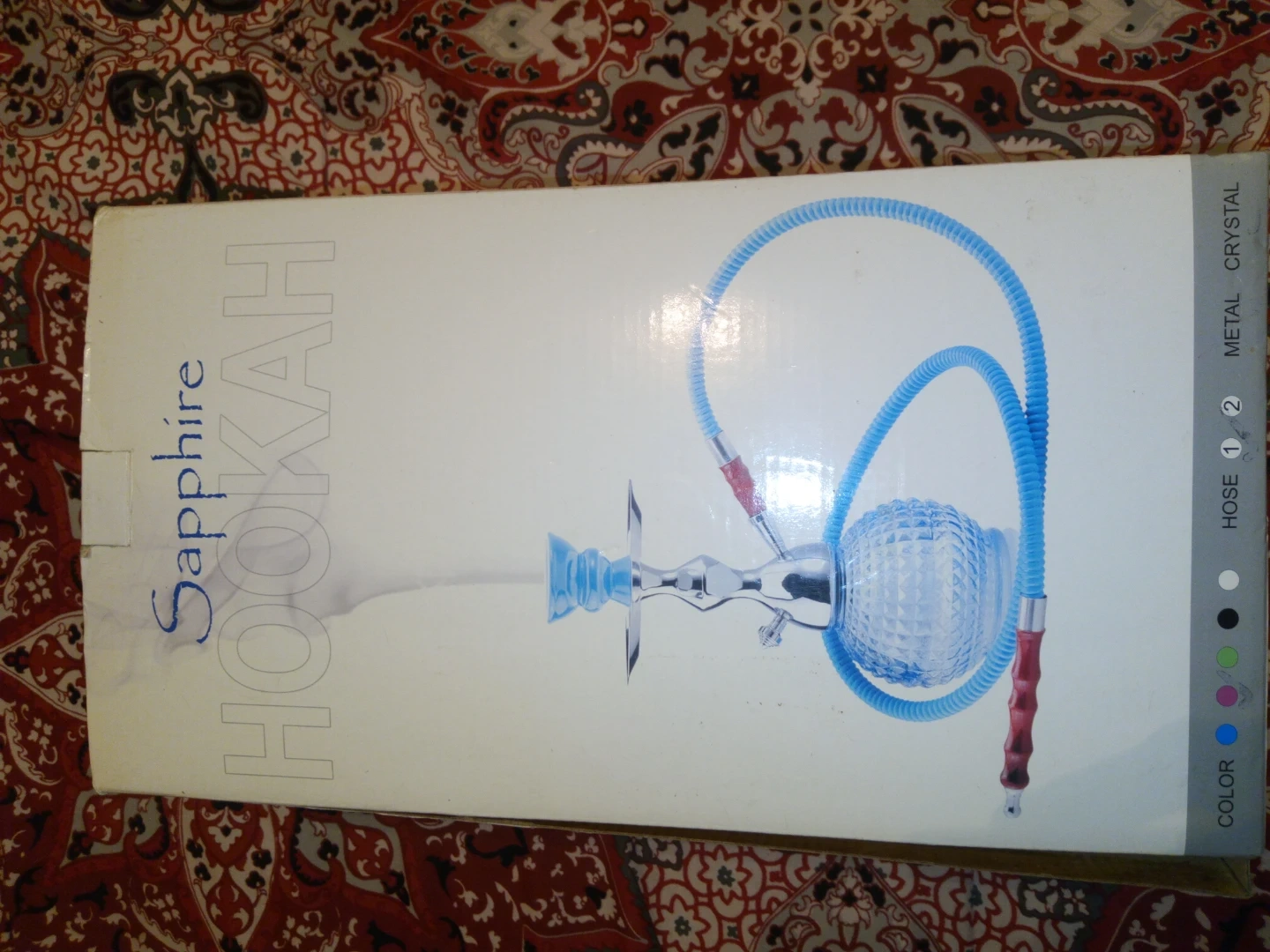 This is a Sapphire Hookah set that comes with a purple glass base and a purple hose. It includes the hose and stem components. It's ready for use!