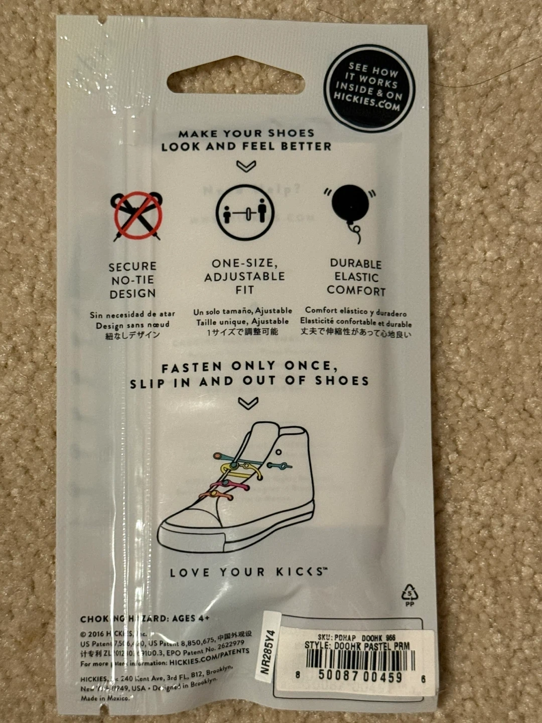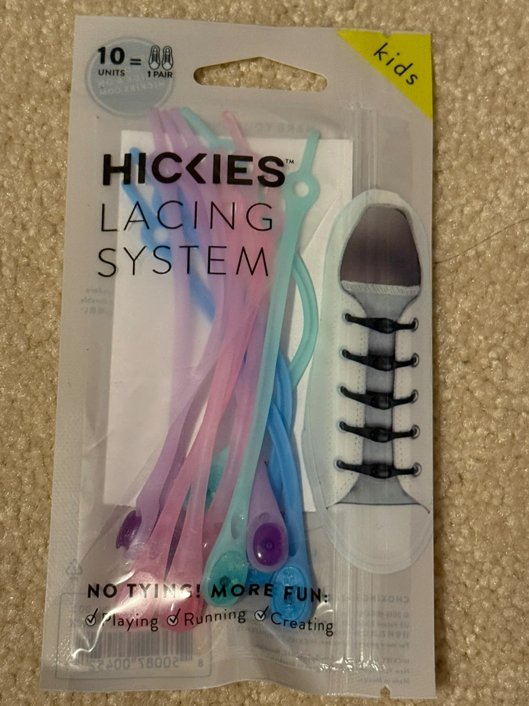 No tying, more fun! These HICKIES lacing systems are designed for secure, adjustable, one-size fits all wear. They offer durable elastic comfort and allow kids to fasten and unfasten shoes easily. They're great for active kids who are playing, running, or creating!