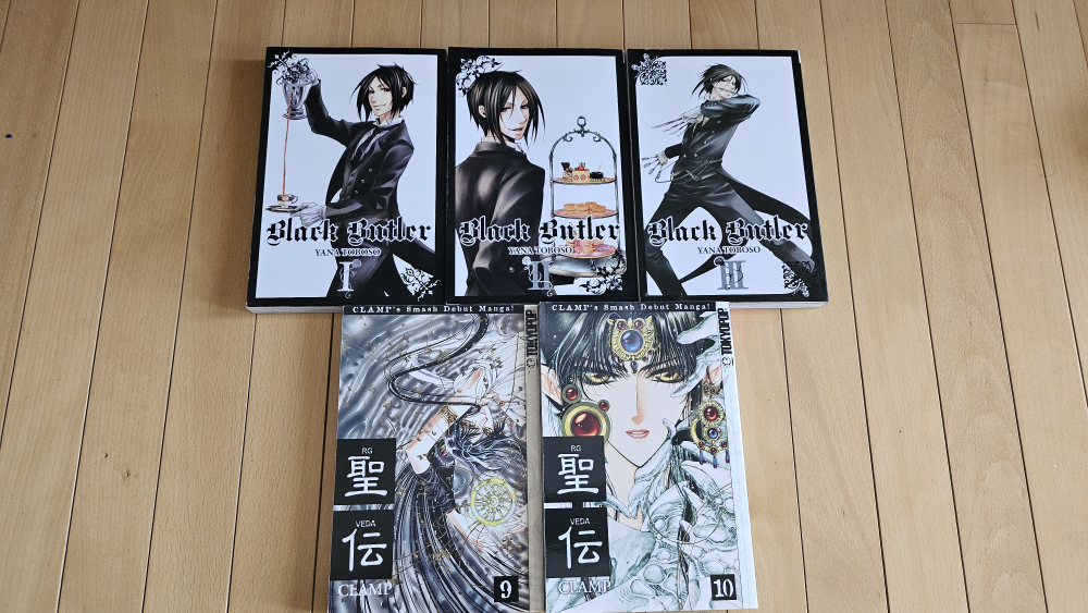 First 3 volumes of Black Butler and volumes 9 and 10 of RG Veda. They've only been read once or twice so they're still fresh!