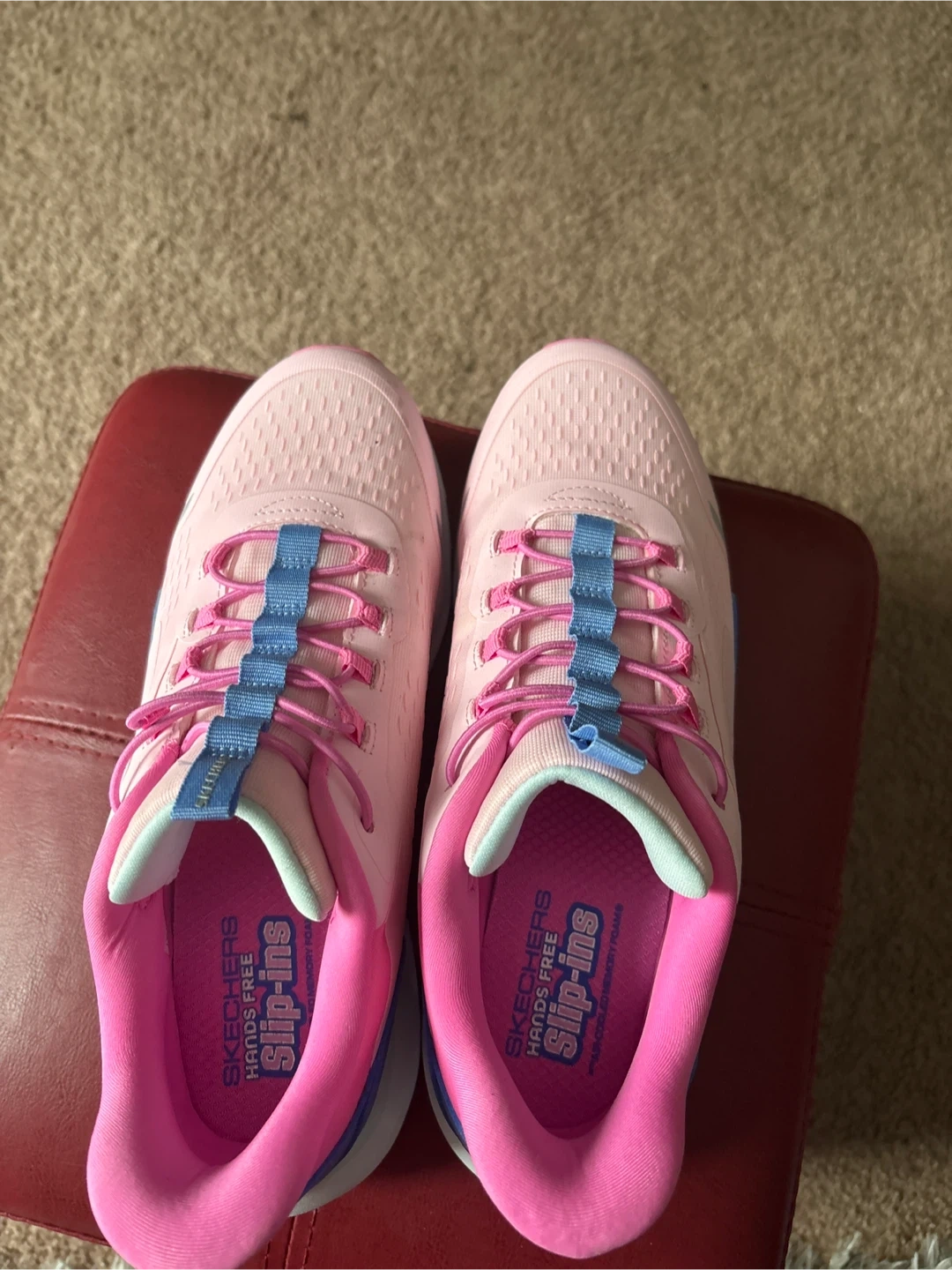 These Skechers Hands Free Slip-ins are in great condition and ready for a new home! They are a lovely shade of pink, perfect for adding a pop of colour to your outfit. The slip-in design makes them super convenient for everyday wear