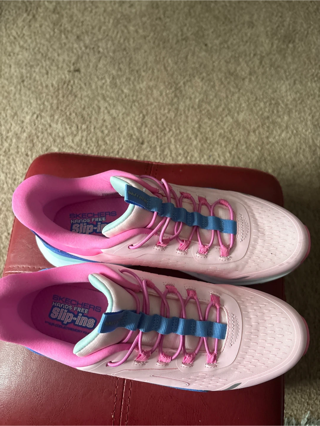 These Skechers Hands Free Slip-ins are in great condition and ready for a new home! They are a lovely shade of pink, perfect for adding a pop of colour to your outfit. The slip-in design makes them super convenient for everyday wear