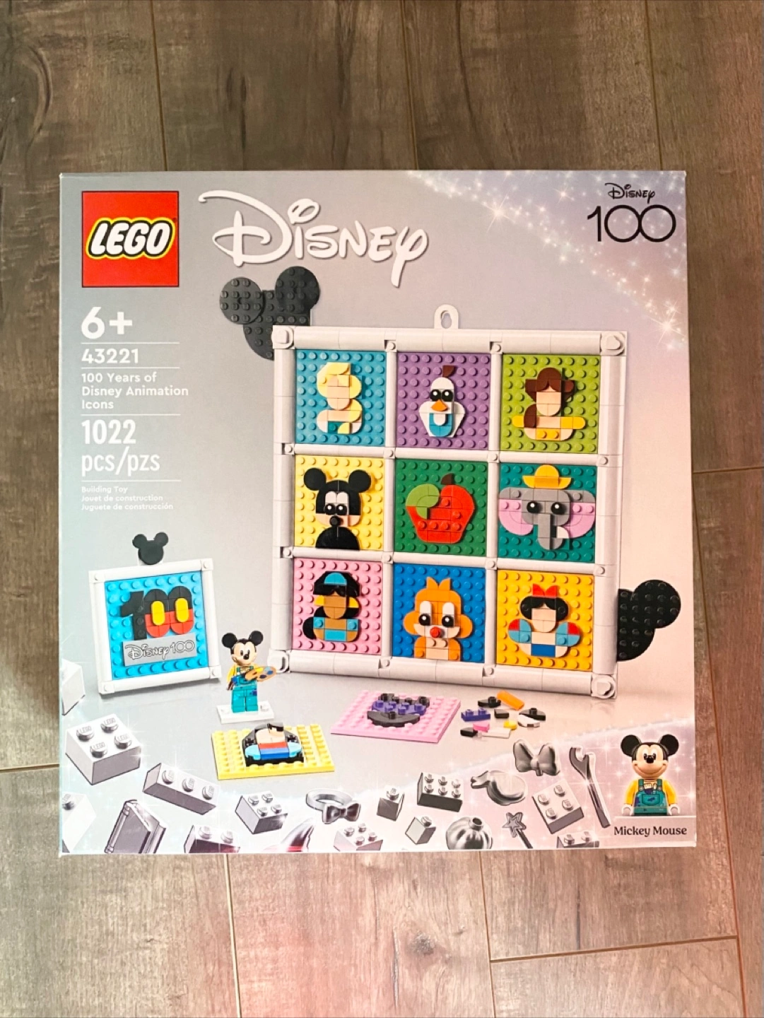 This LEGO set celebrates 100 Years of Disney Animation Icons. It includes 1022 pieces for building. Recommended for ages 6+.