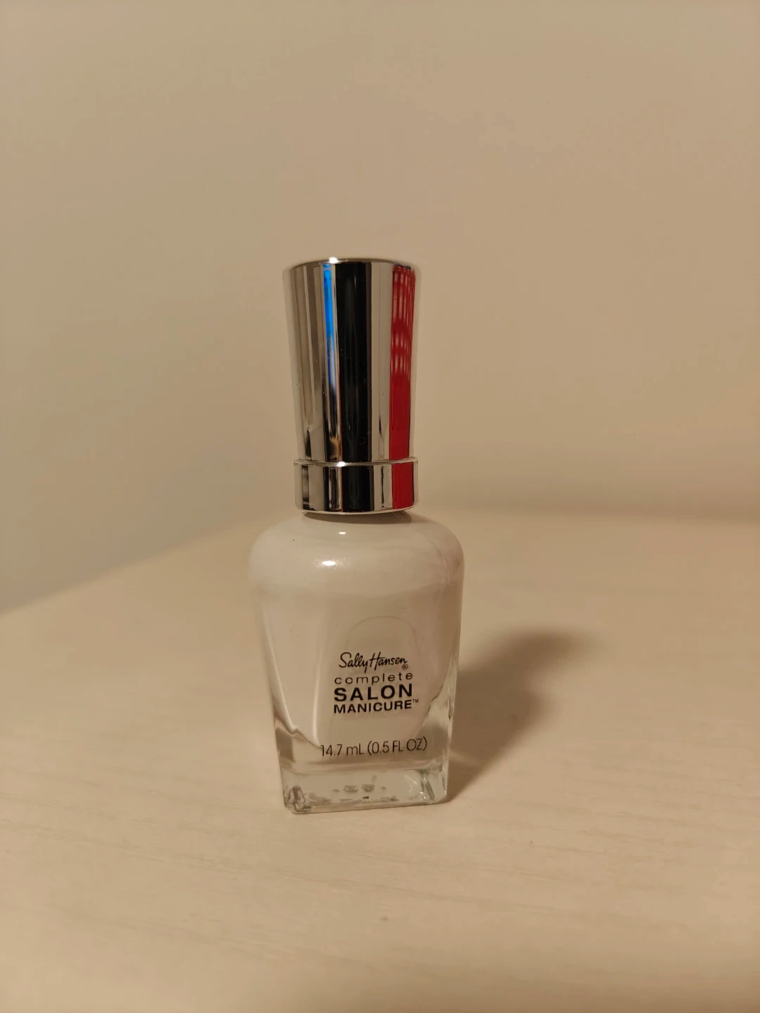 Sally Hansen Complete Salon Manicure nail polish in the shade "White Here White Now". It's a 14.7 mL (0.5 fl oz) bottle. This polish offers a classic white shade for your nails.