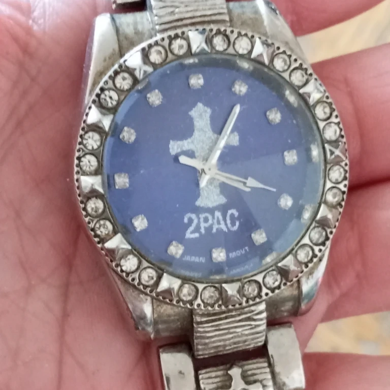 This watch features a blue dial with a cross design and "2PAC" printed on it.