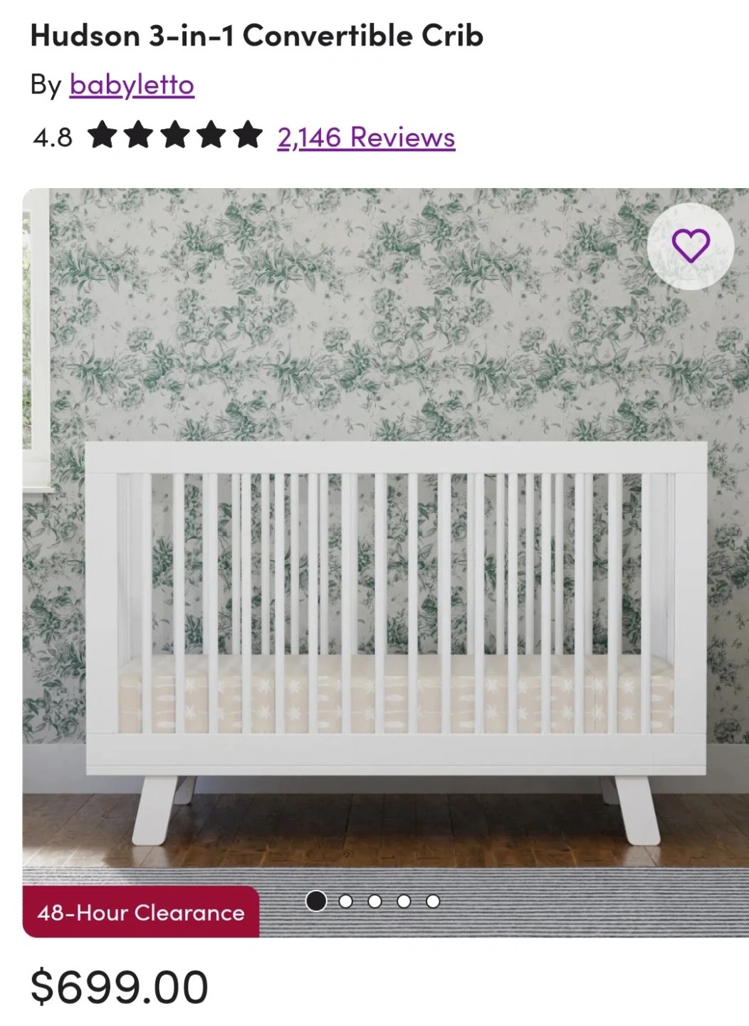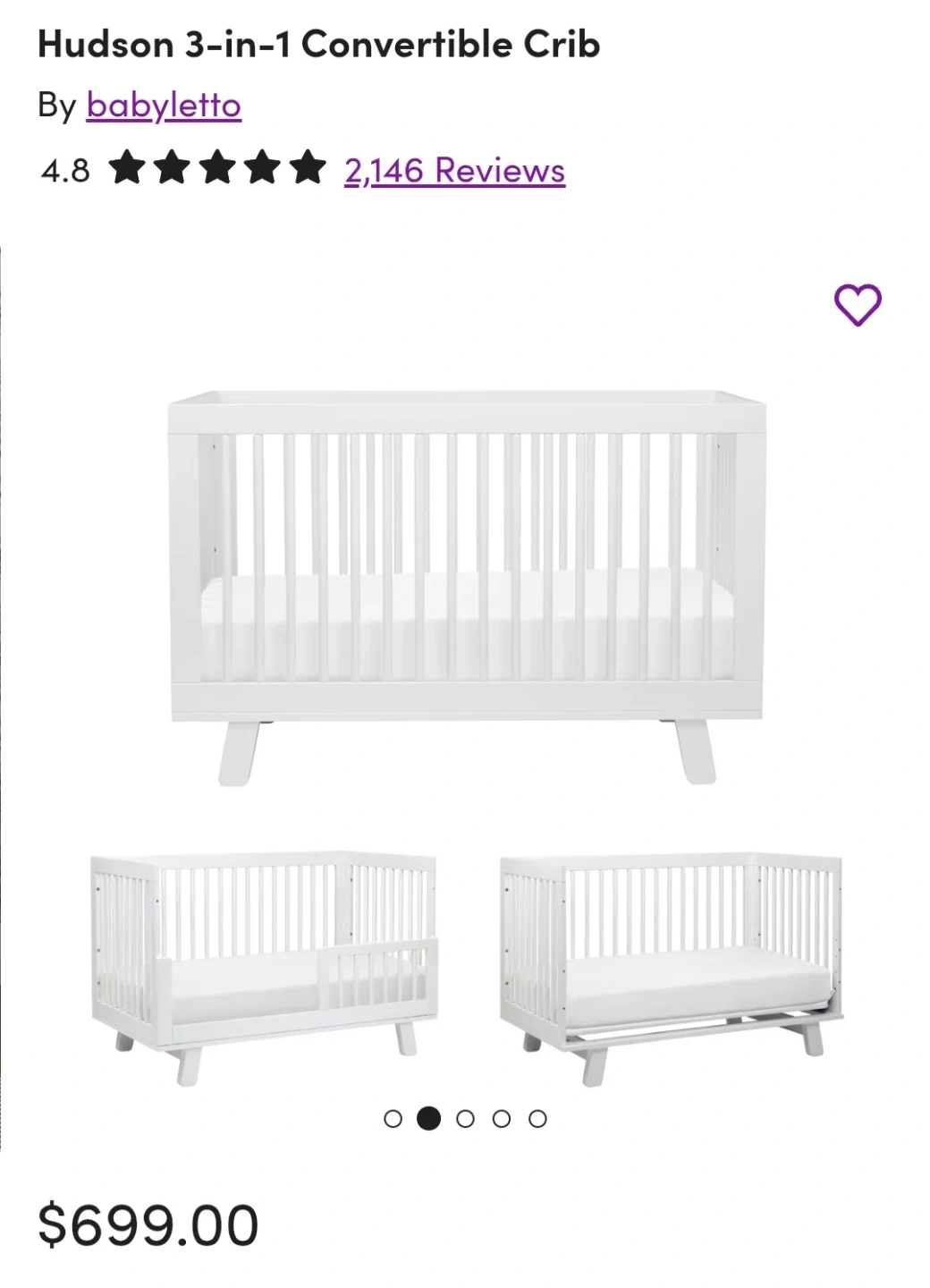 Babyletto Hudson 3-in-1 convertible crib + 5inch mattress