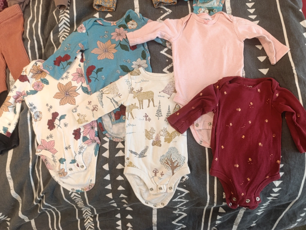 Buy & SellBaby Girl Clothing Bundle (Size 0-3 Months)Baby Girl Clothing Bundle (Size 0-3 Months)$15Baby girl clothing 3 onesies 5 pants 5 bodysuits 1 dress 1 hoody 2 hats All items are in great condition no tears or holes :)ConditionGoodAge0-6 monthsWHERE TO MEETAirdrieView MapSELLERverifiedNeringaMeadowbrook893 reviews0 chats·0 favorites·5 viewsSEND CHAT TO SELLERHi Neringa! I’m interested in your listing.Hi Neringa! I’m interested in your listing.Get the Karrot app to chatSign In to chat