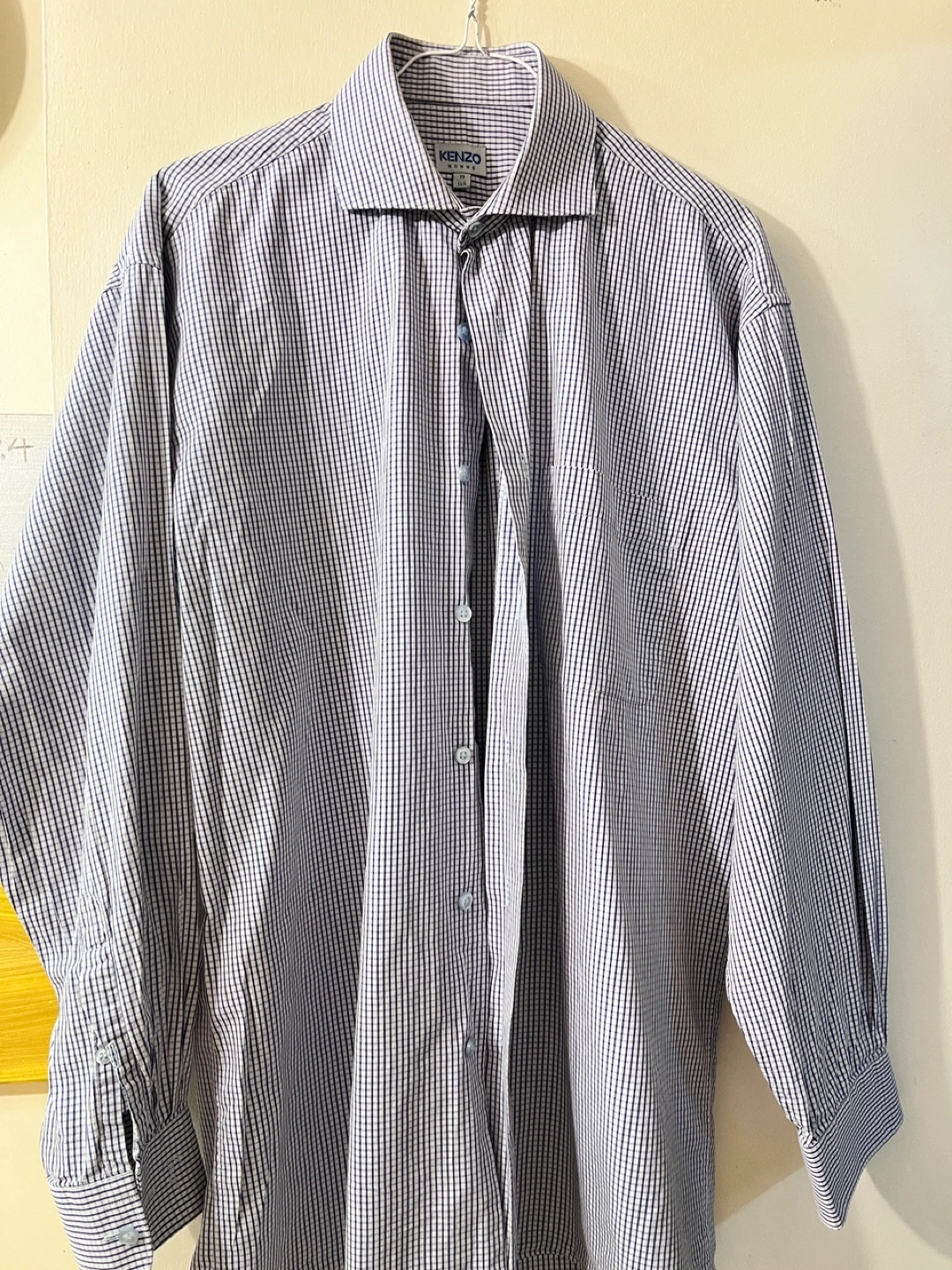 Here's a stylish Kenzo Homme dress shirt in a classic checkered pattern. It's a size 15½ and would be a great addition to your wardrobe. The shirt is in good condition and ready for a new home!