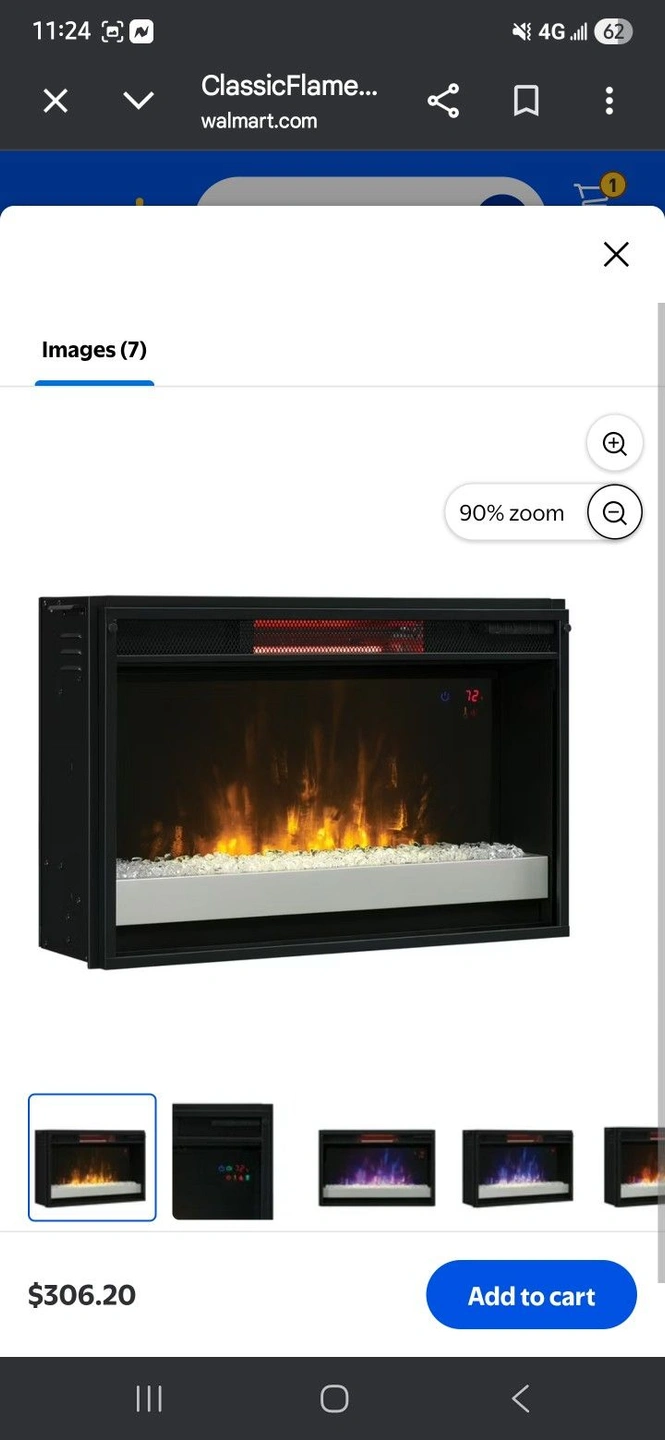 Add warmth and inviting ambiance to your home with this ClassicFlame 26" infrared quartz electric fireplace insert. It provides supplemental zone heating for up to 1,000 sq ft and features adjustable flame effects with five speed and five brightness settings, usable with or without heat for year-round enjoyment. The infrared heat helps maintain natural humidity. It includes an adjustable digital thermostat, an electronic timer (30 mins to 9 hours), and a remote control. Designed for simple installation without venting or gas lines, it includes an owner's manual. Features patent-pending Safer Plug fire prevention technology for added safety. Safe for children and pets, uses energy-saving LED technology, and produces no emissions. Weight: 26.91 lbs. CSA safety certified.