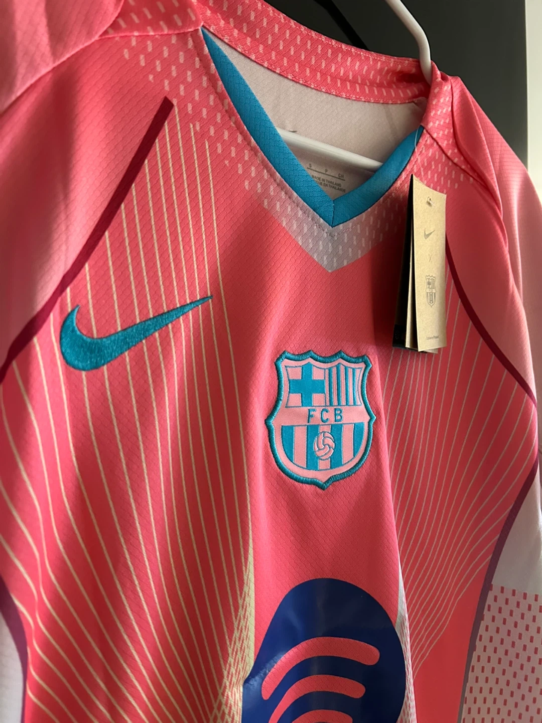 This is a Nike FC Barcelona jersey from the 2023-2024 season, featuring the Spotify sponsorship. It's made with Dri-FIT fabric for comfort. Great for any football fan!
