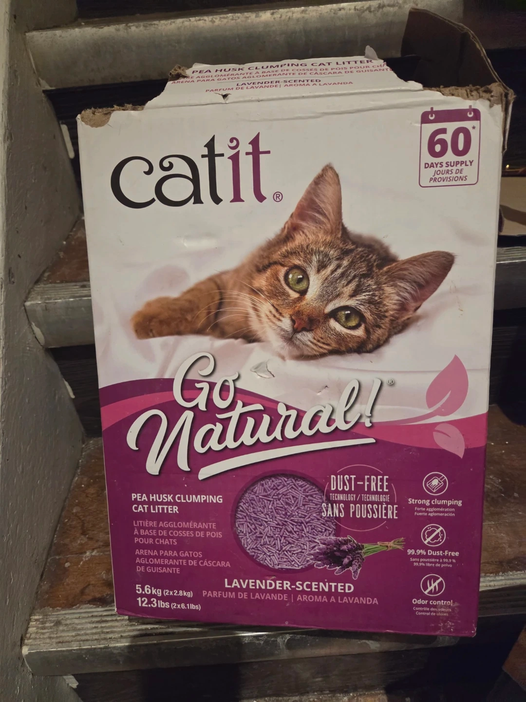 Includes Catit Go Natural Lavender Scented Pea Husk Clumping Cat Litter, 5.6kg (12.3lbs). Also includes Arm & Hammer Slide Multi-Cat Clumping Litter, 17.2kg (38LB). Both are dust-free and designed for strong clumping.