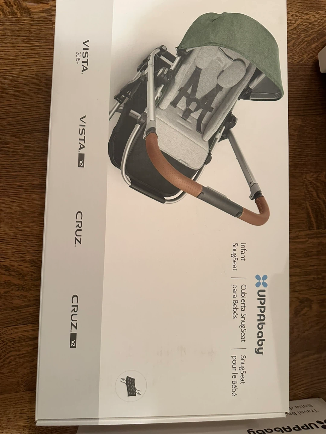Selling an UPPAbaby Infant SnugSeat compatible with both the Vista V2 and Cruz V2 strollers. It's in excellent condition and comes in the original box. Perfect for keeping your little one cozy and secure!
