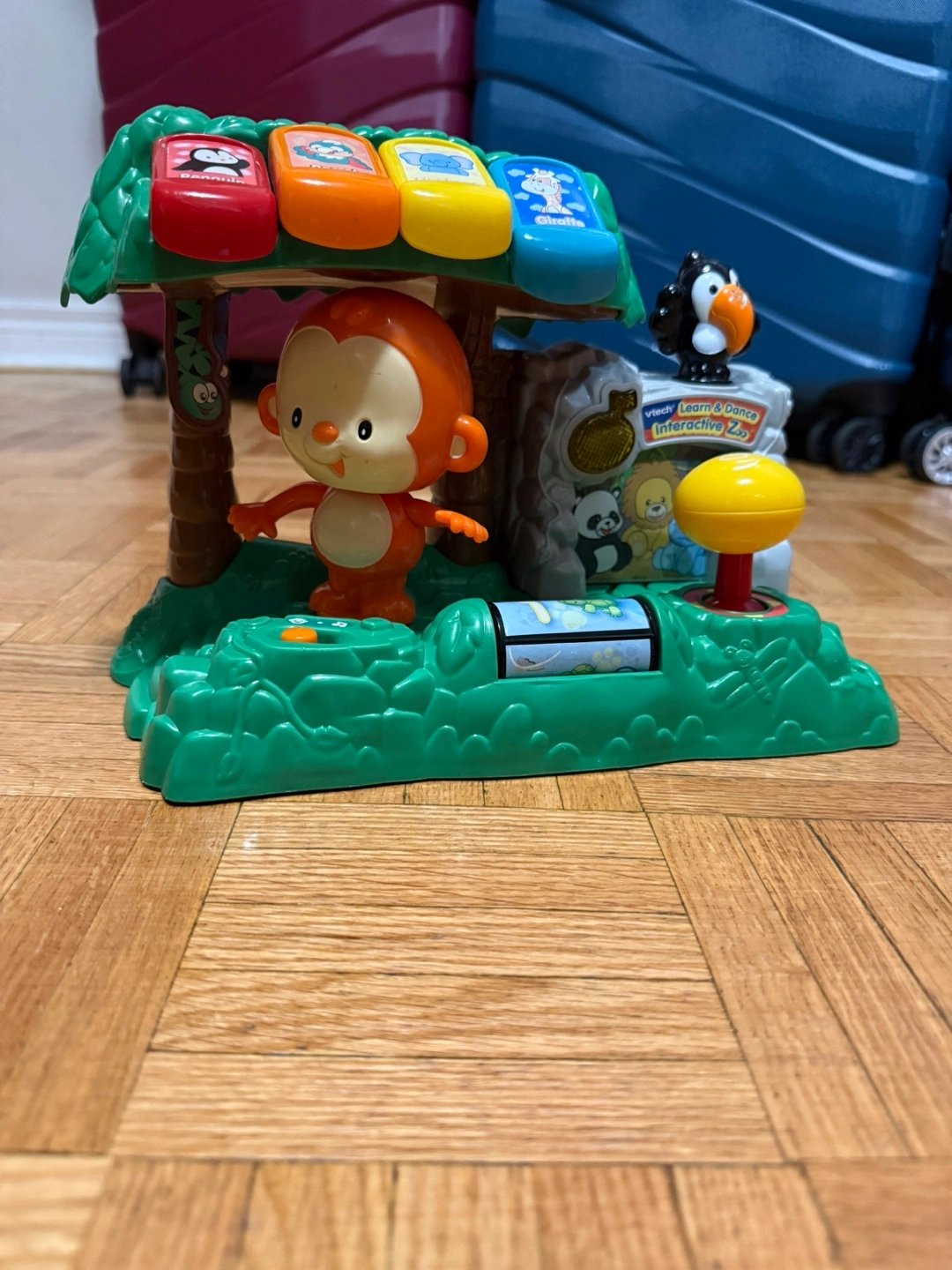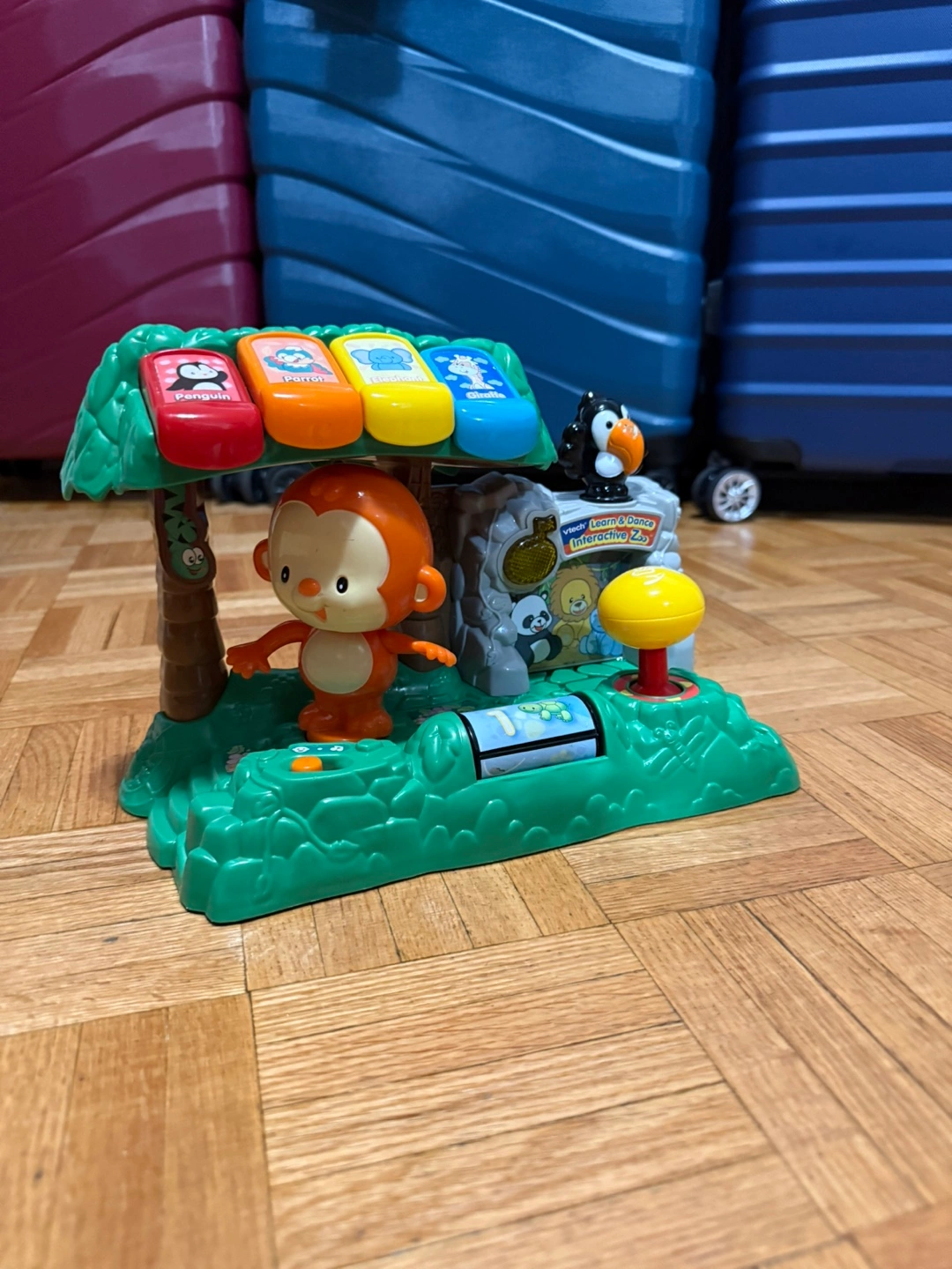Featuring a monkey, a tree-like structure, and other animal figures. With bright colours and buttons. Perfect for keeping little ones engaged.
